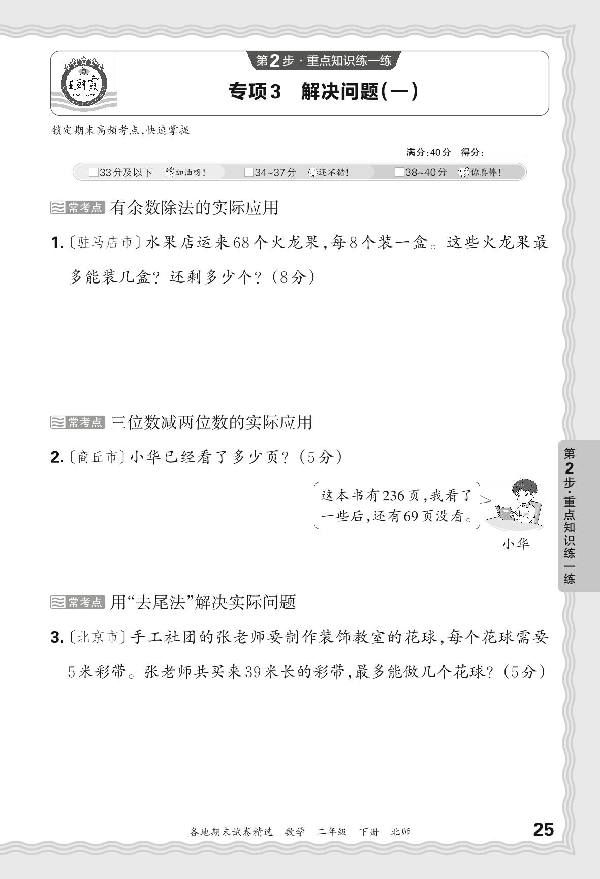 2024春下册二年级数学北师版 期末专项卷JX版·解决问题(一)【3】