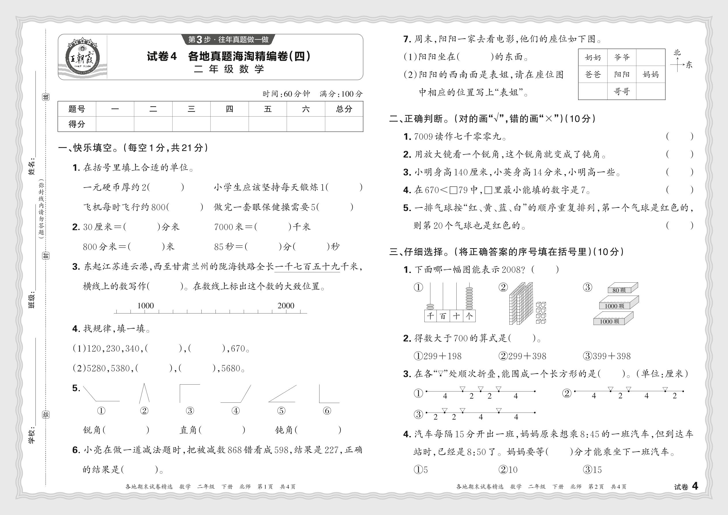 2024春下册二年级数学北师版 各地真题海淘精编卷(四)JX