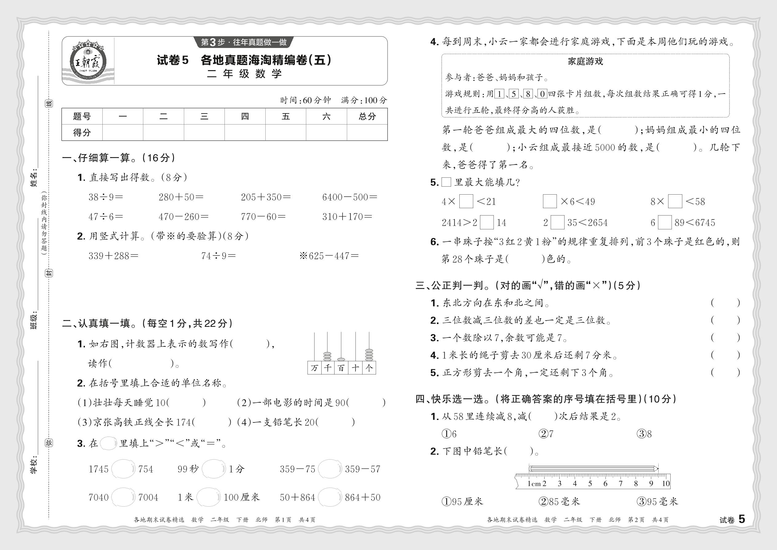 2024春下册二年级数学北师版 各地真题海淘精编卷(五)JX