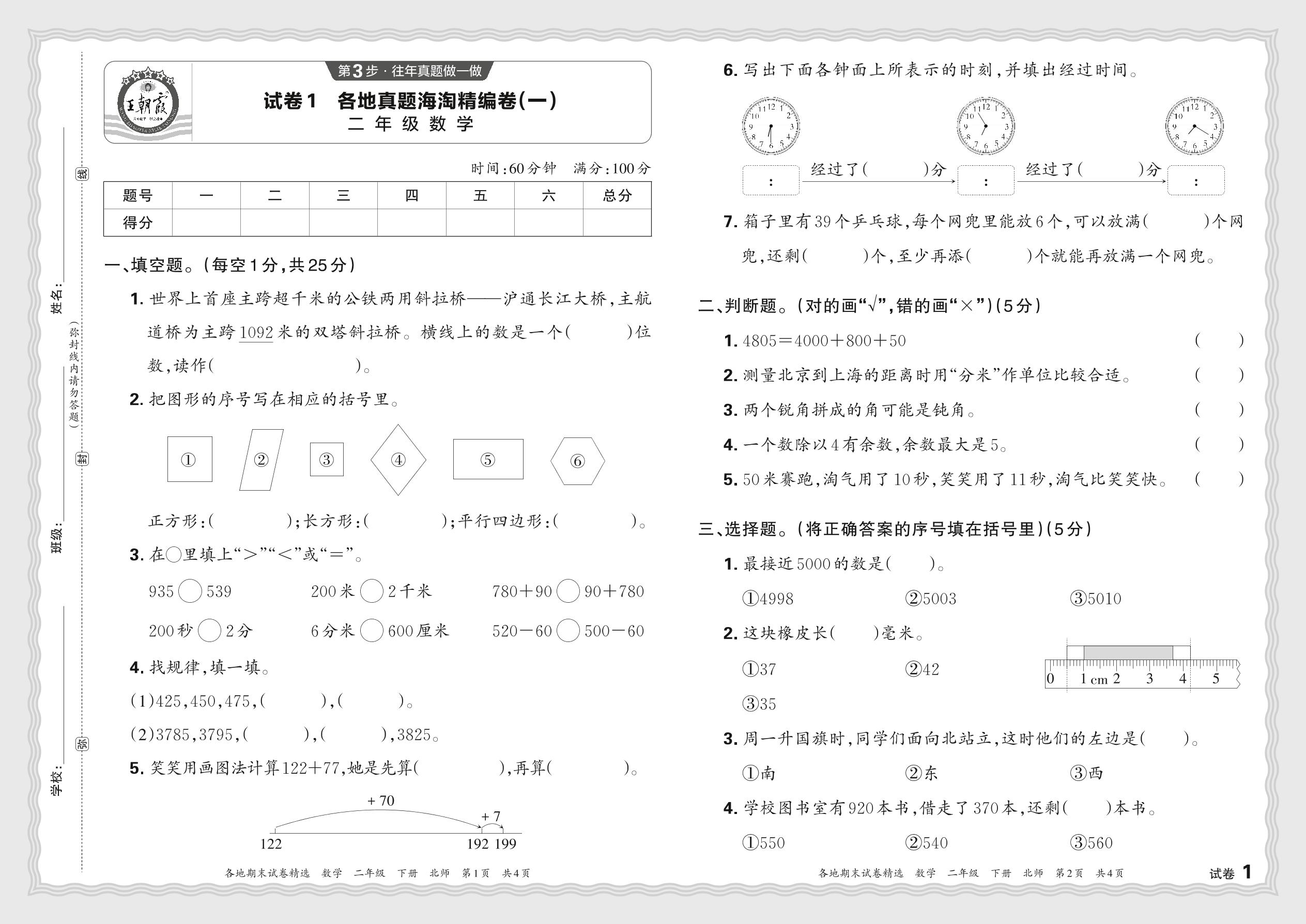 2024春下册二年级数学北师版 各地真题海淘精编卷(一)JX