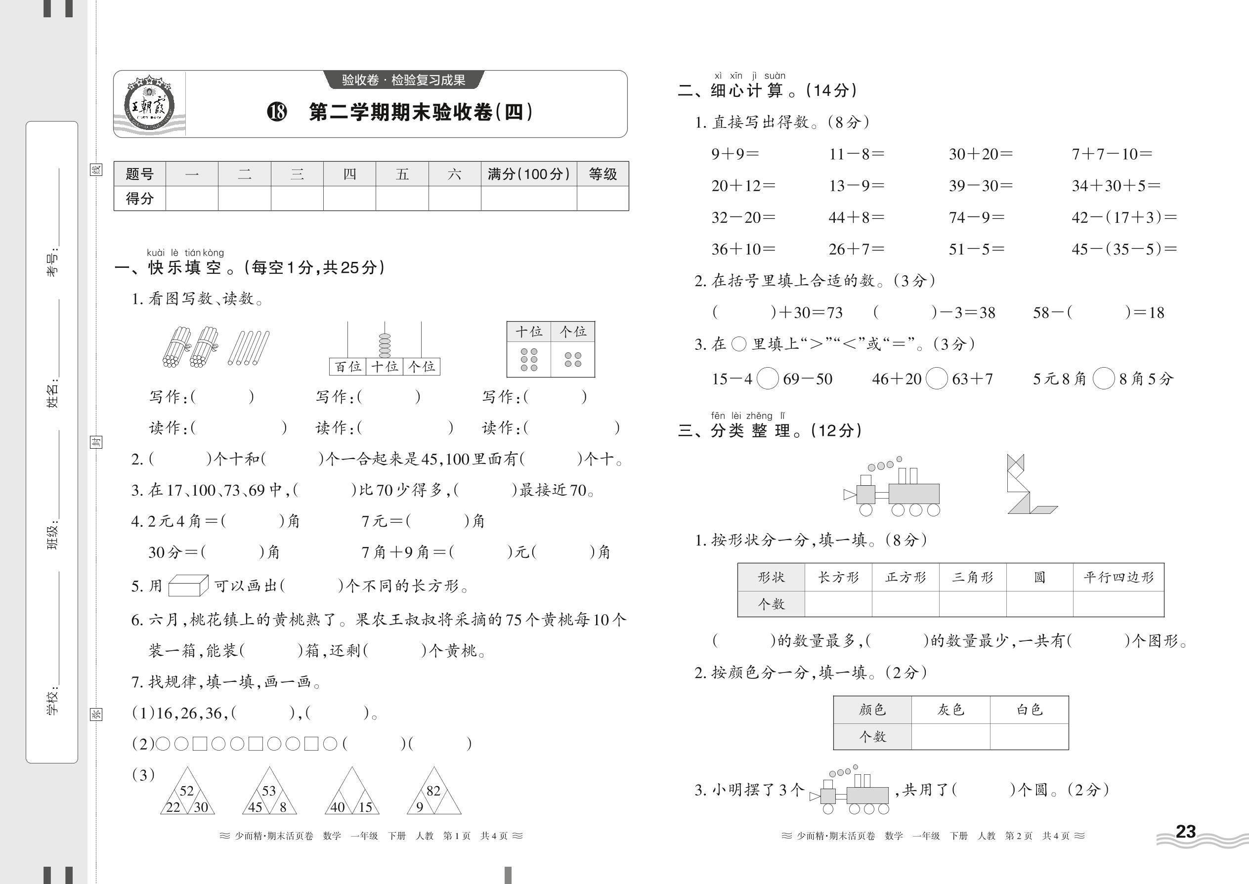 2024春下册一年级数学人教版 第二学期期末验收卷(四)