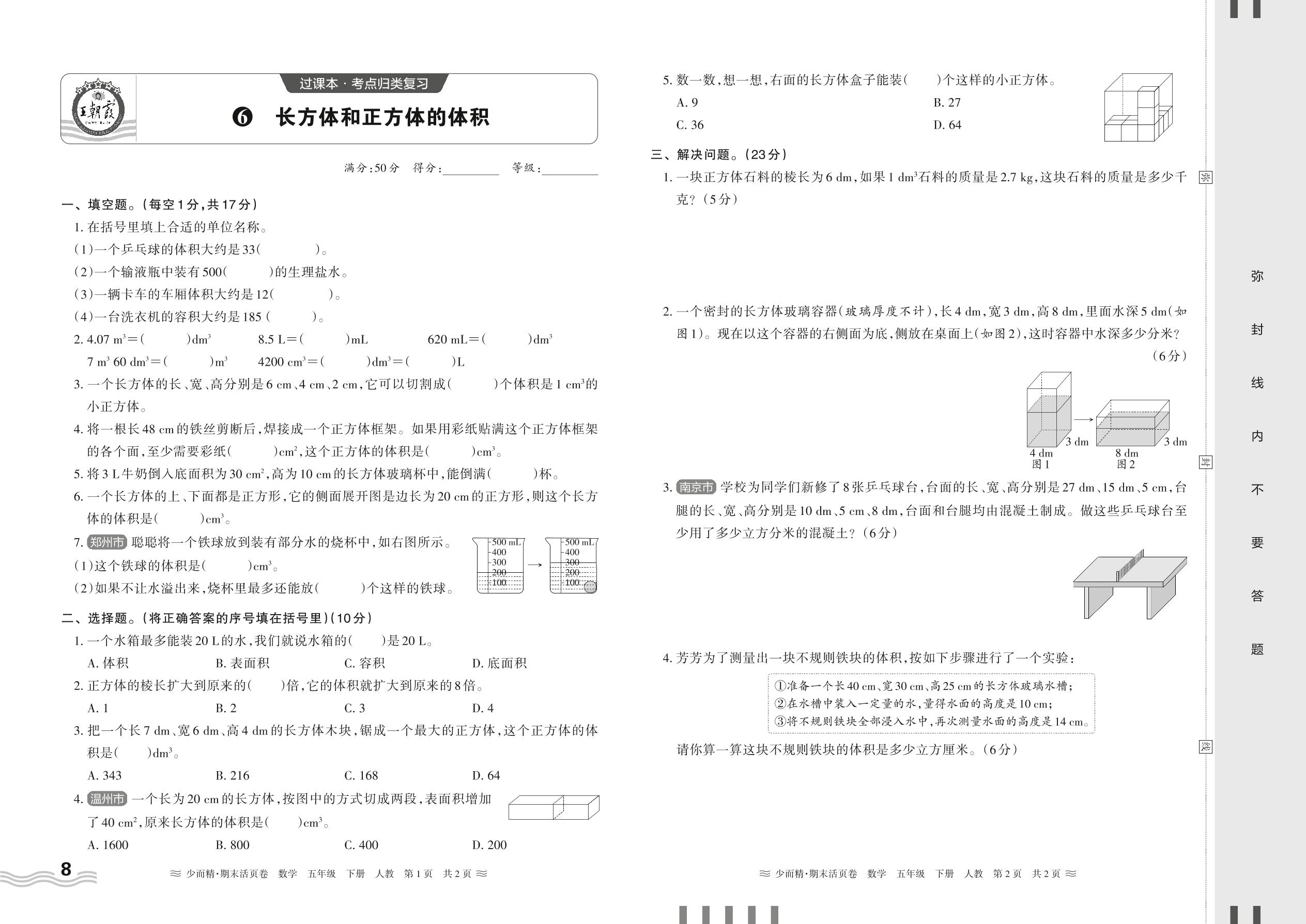 2024春下册五年级数学人教版 期末过课本HY版·长方体和正方体的体积【6】
