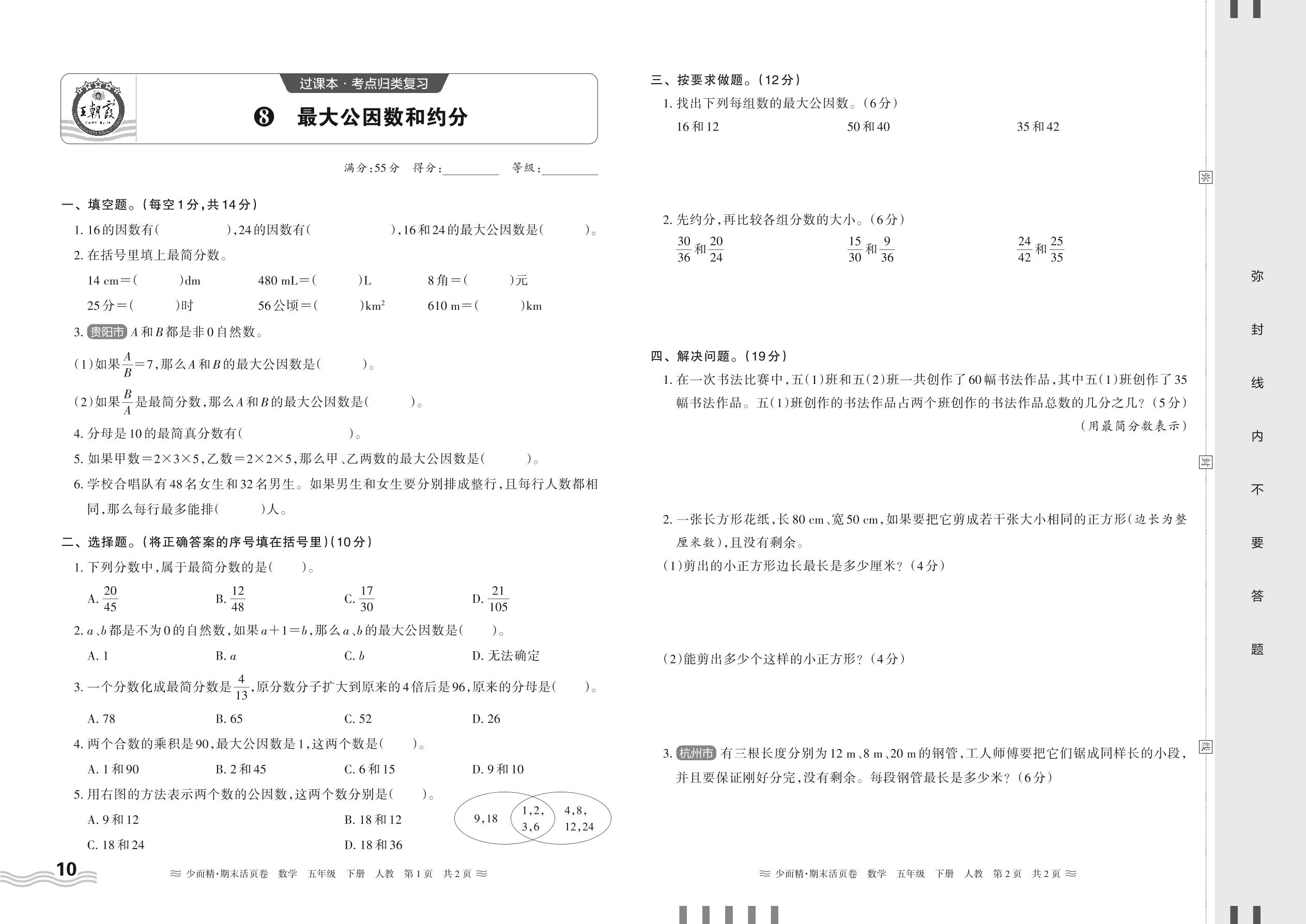 2024春下册五年级数学人教版 期末过课本HY版·最大公因数和约分【8】