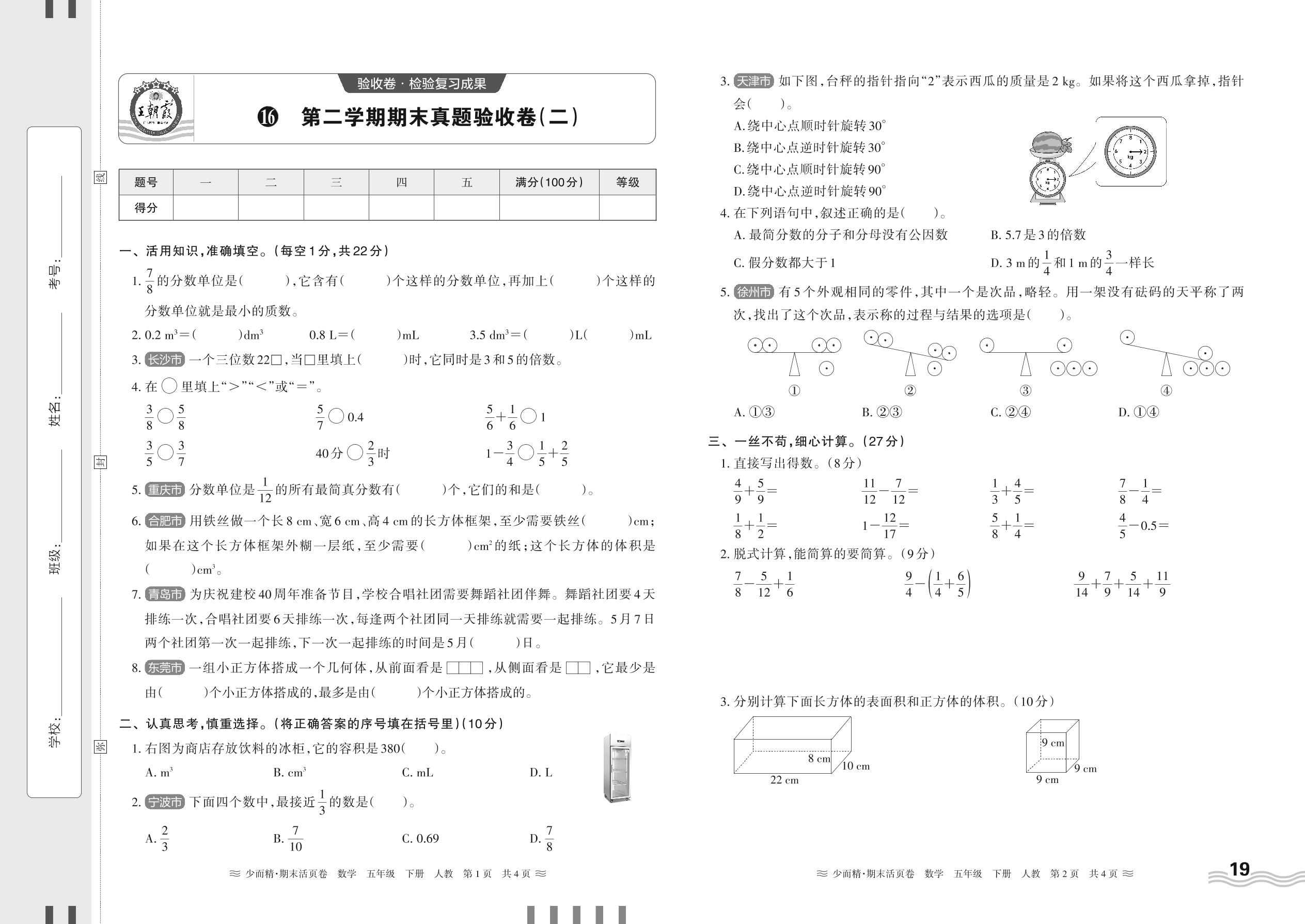 2024春下册五年级数学人教版 第二学期期末真题验收卷(二)