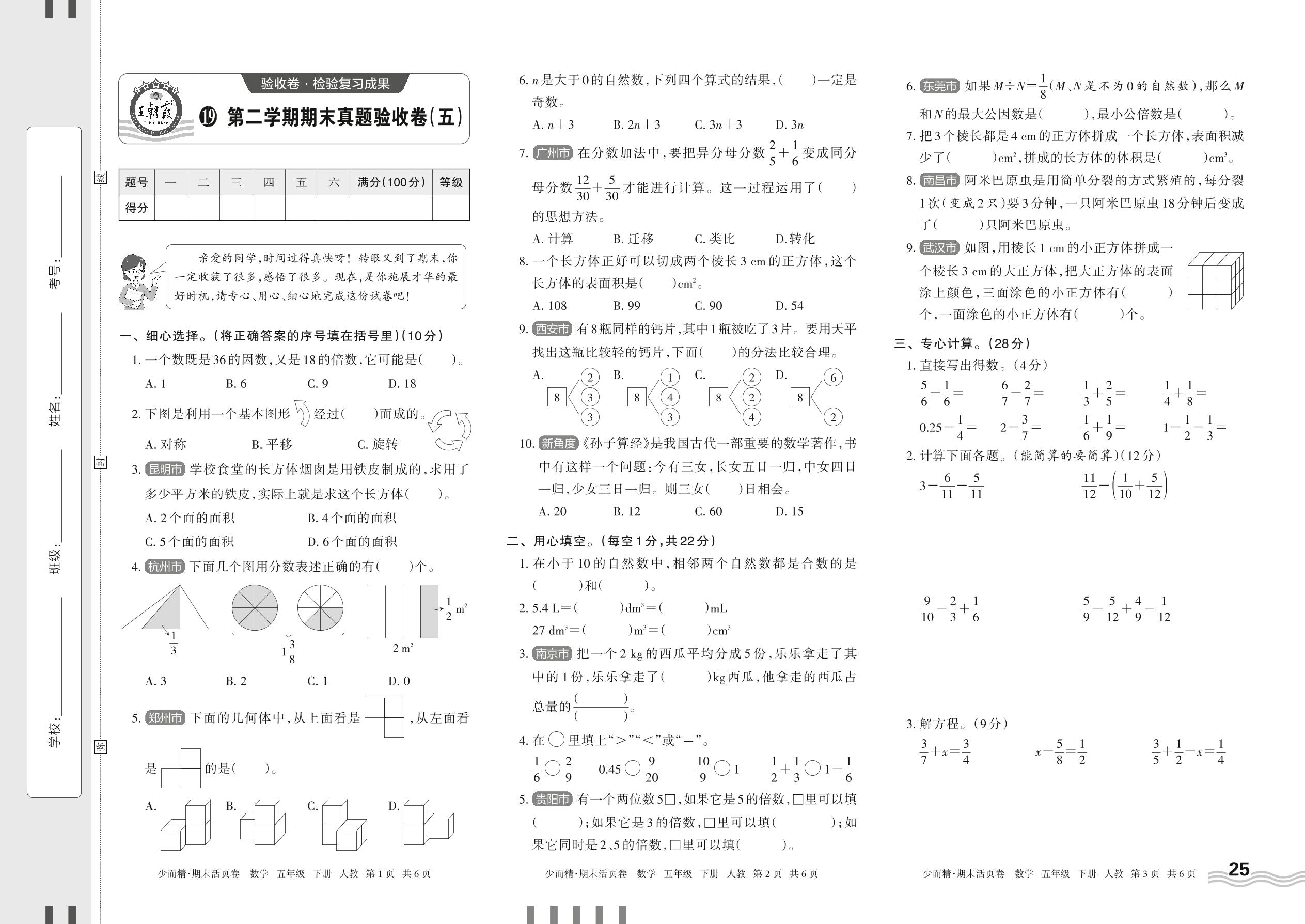 五年级数学人教版下册期末卷