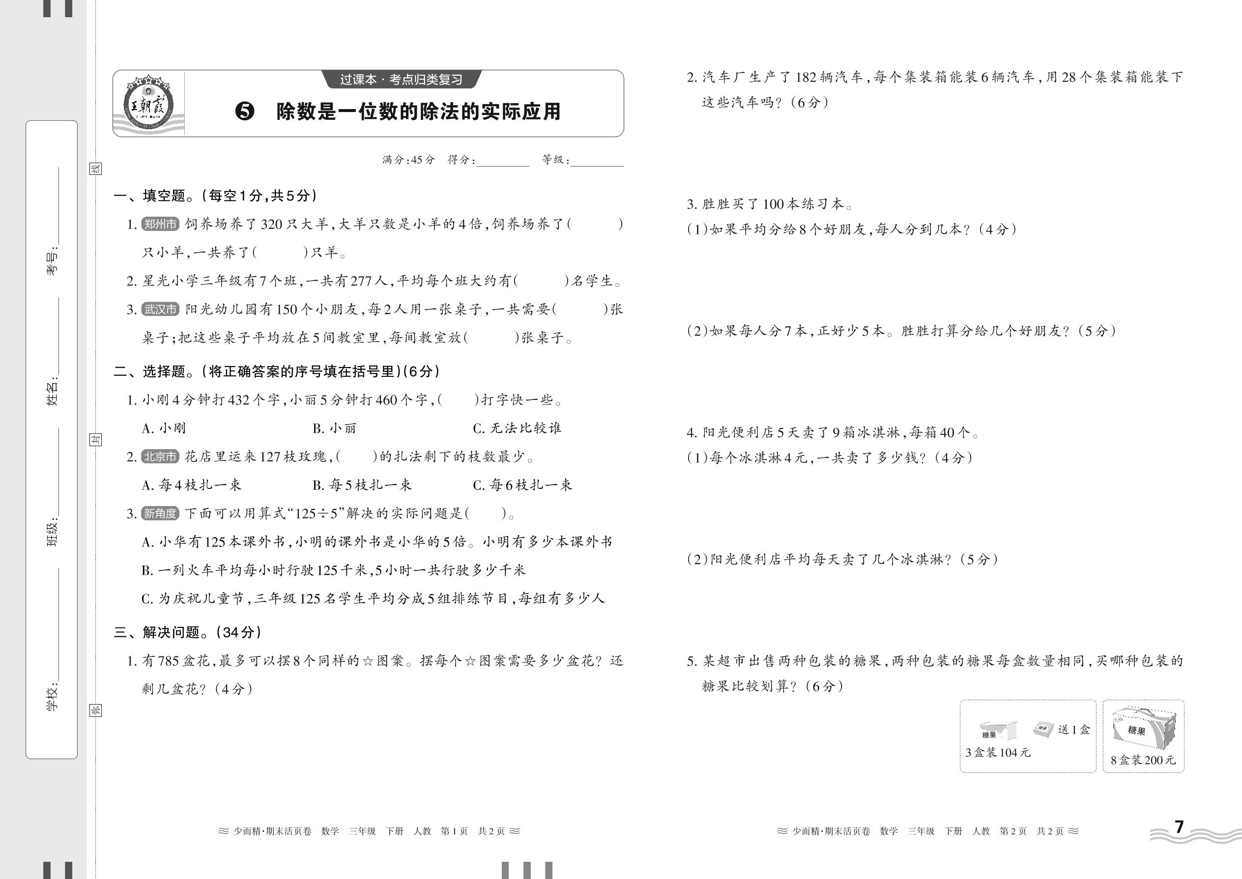 2024春下册三年级数学人教版 期末过课本HY版·除数是一位数的除法的实际应用【5】
