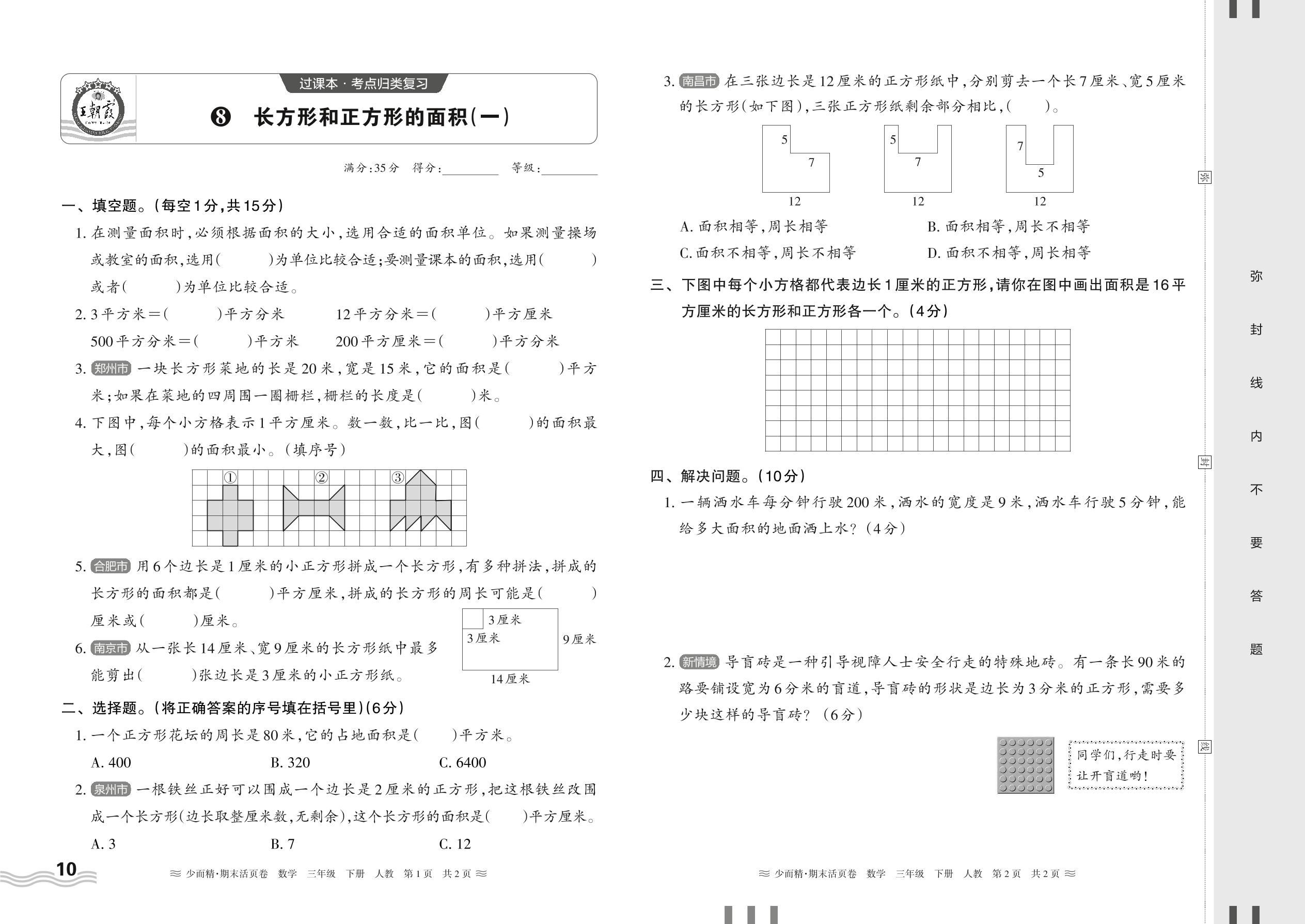 2024春下册三年级数学人教版 期末过课本HY版·长方形和正方形的面积(一)【8】