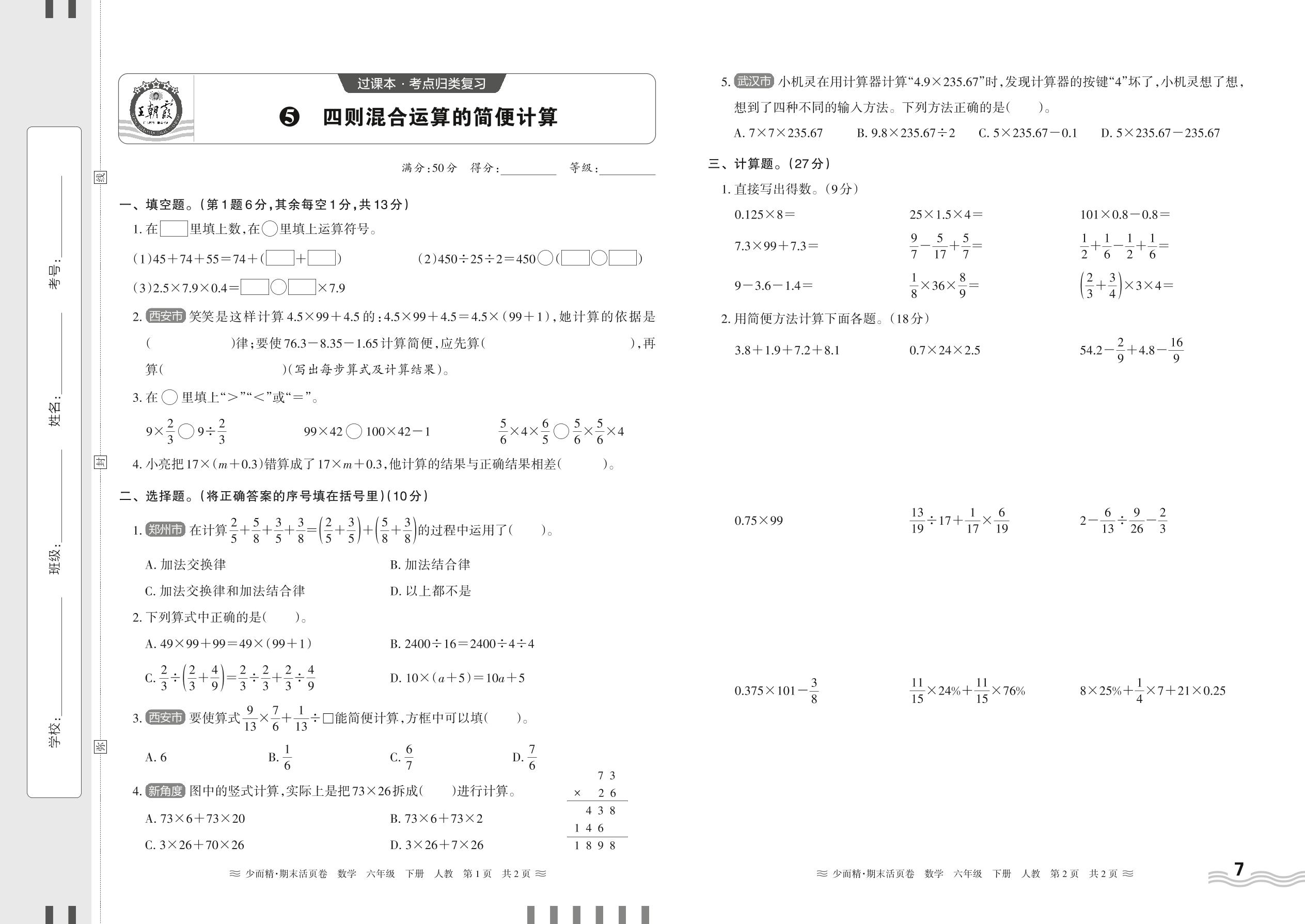 2024春下册六年级数学人教版 期末过课本HY版·四则混合运算的简便计算【5】