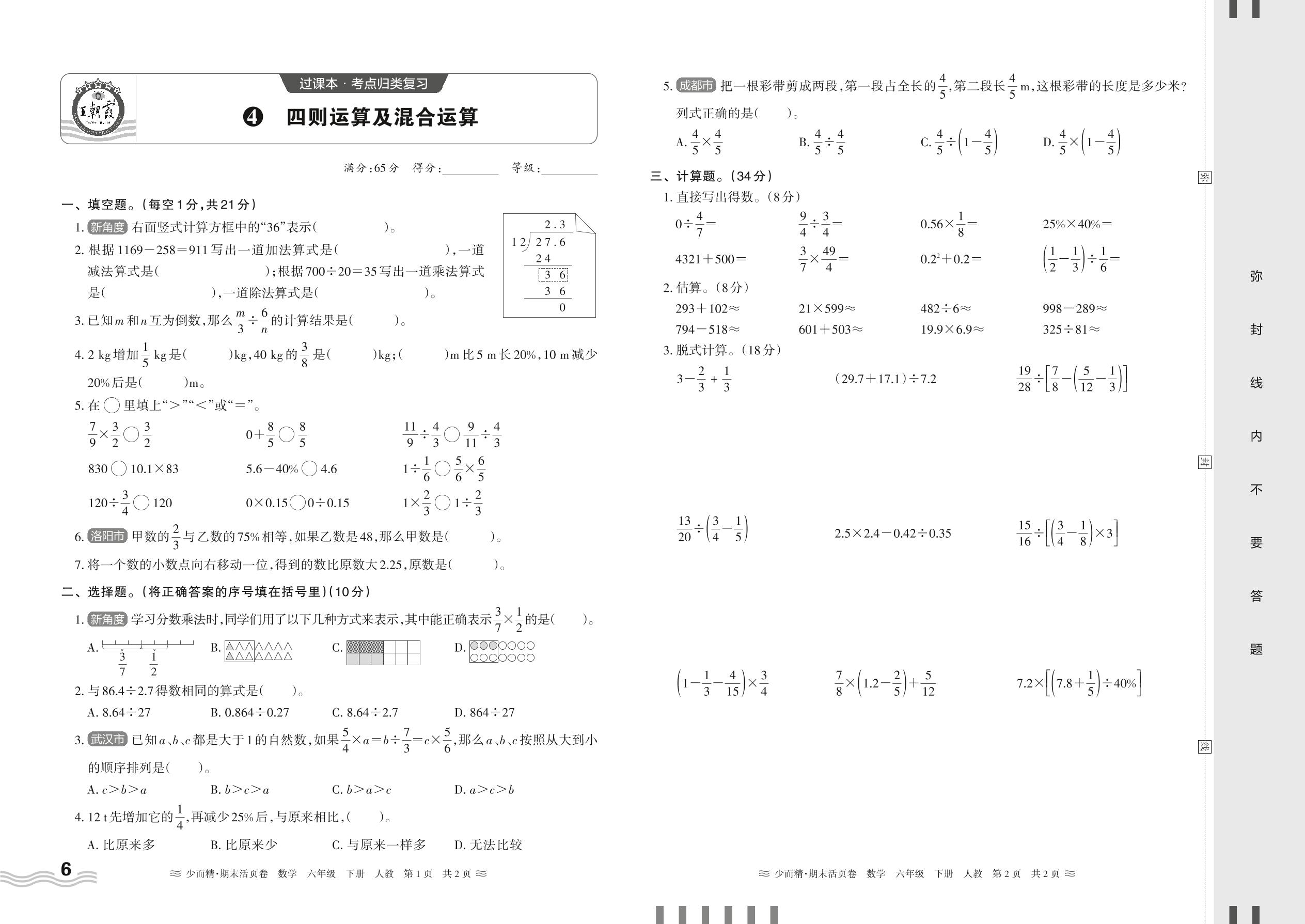 2024春下册六年级数学人教版 期末过课本HY版·四则运算及混合运算【4】