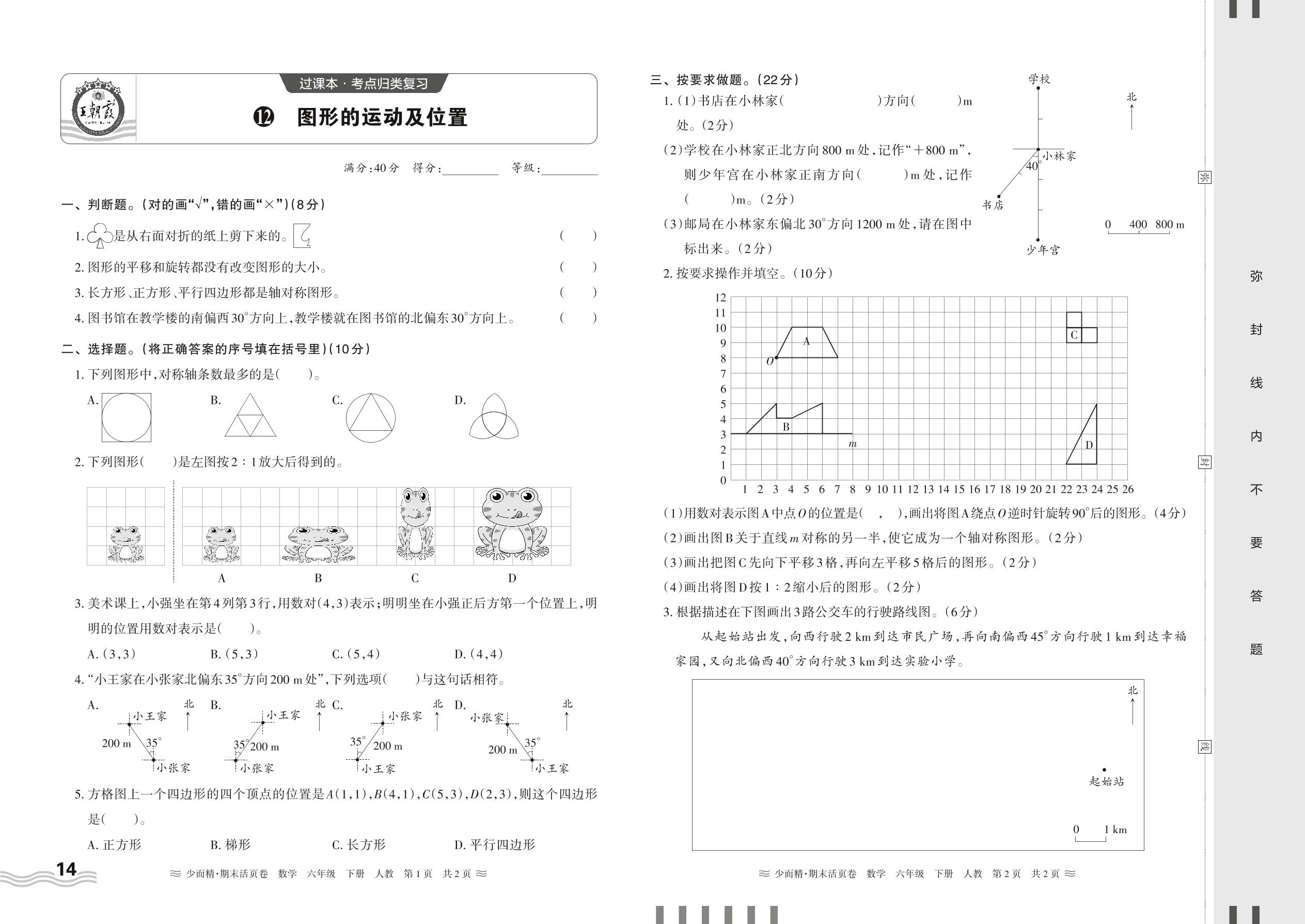 2024春下册六年级数学人教版 期末过课本HY版·图形的运动及位置【12】