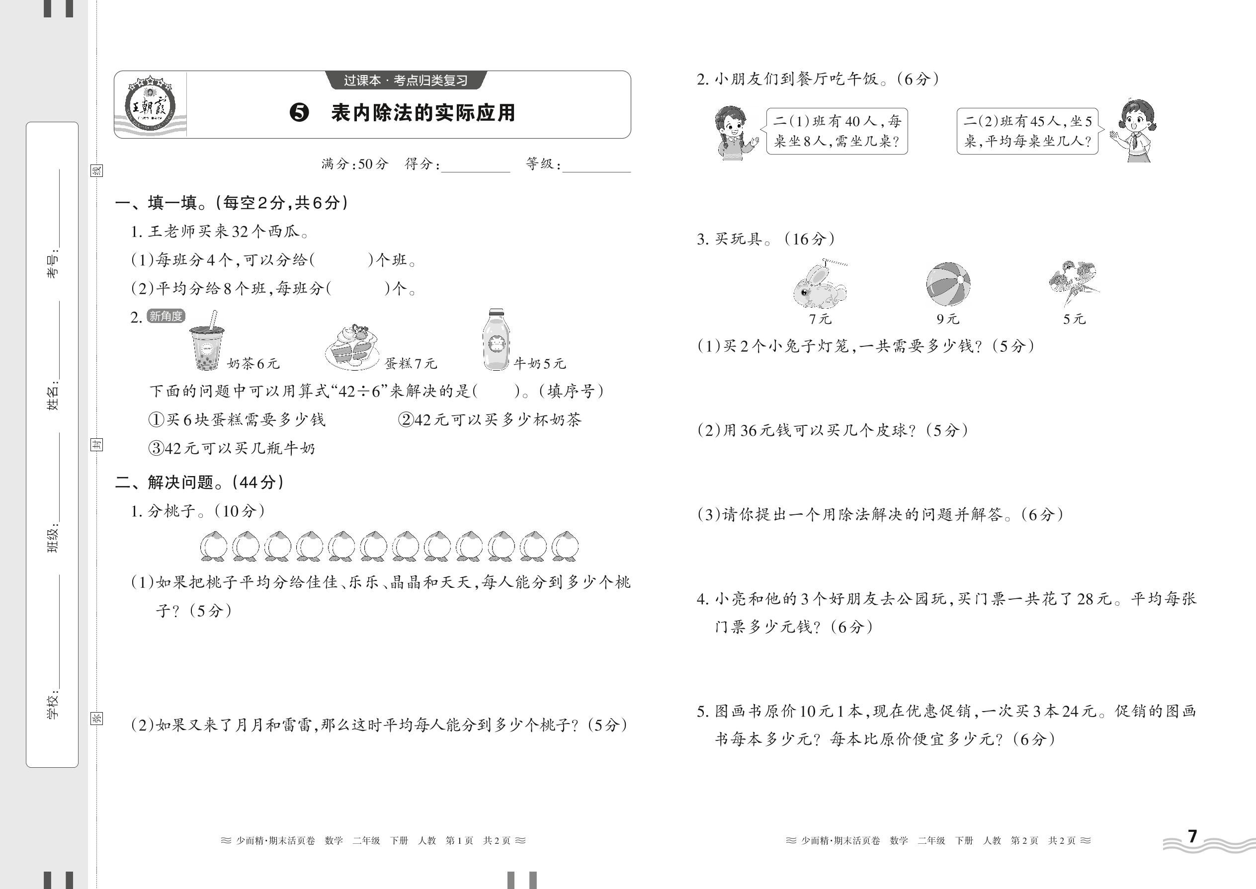 2024春下册二年级数学人教版 期末过课本HY版·表内除法的实际应用【5】