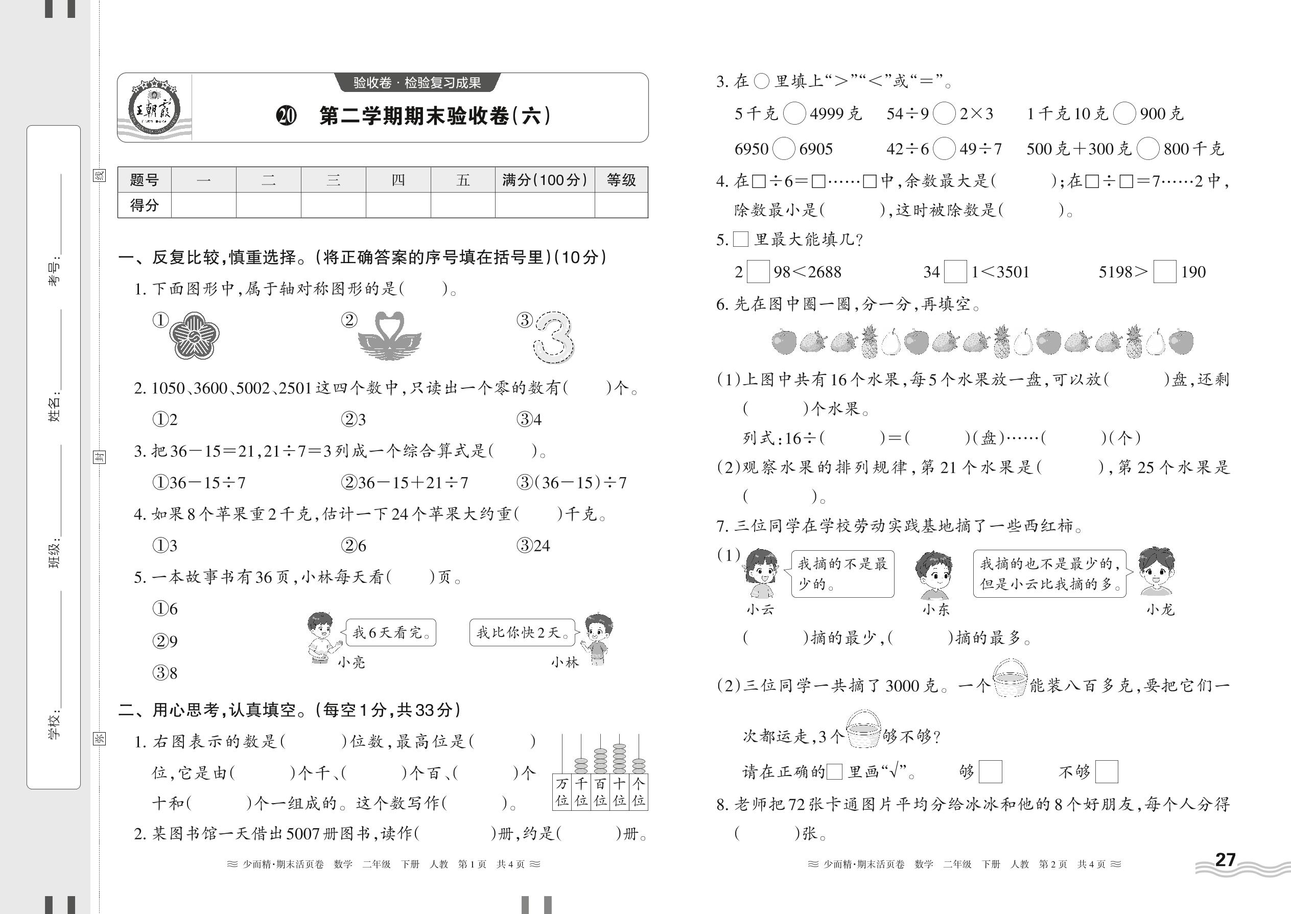 2024春下册二年级数学人教版 第二学期期末验收卷(六)