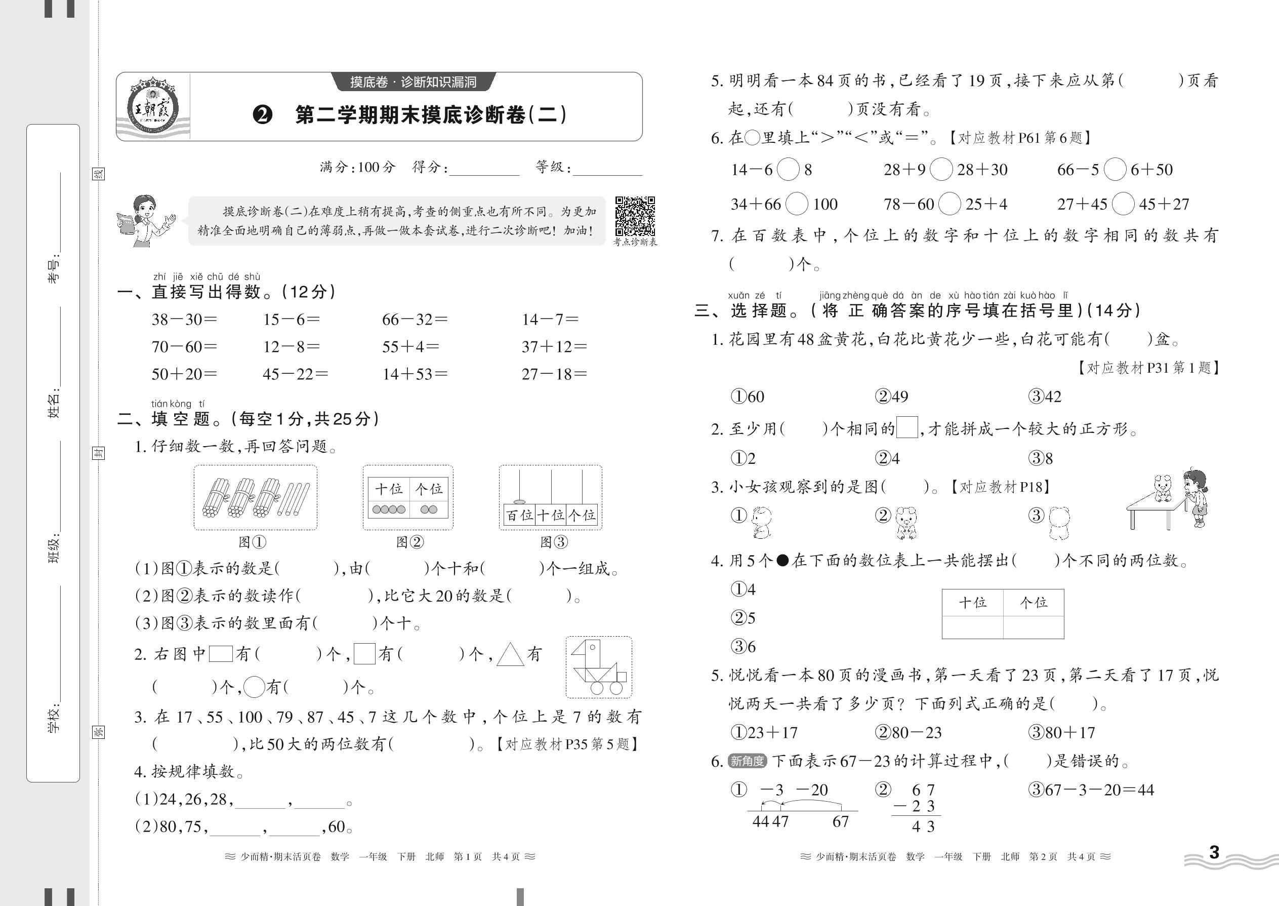 2024春下册一年级数学北师版 第二学期期末摸底诊断卷(二)