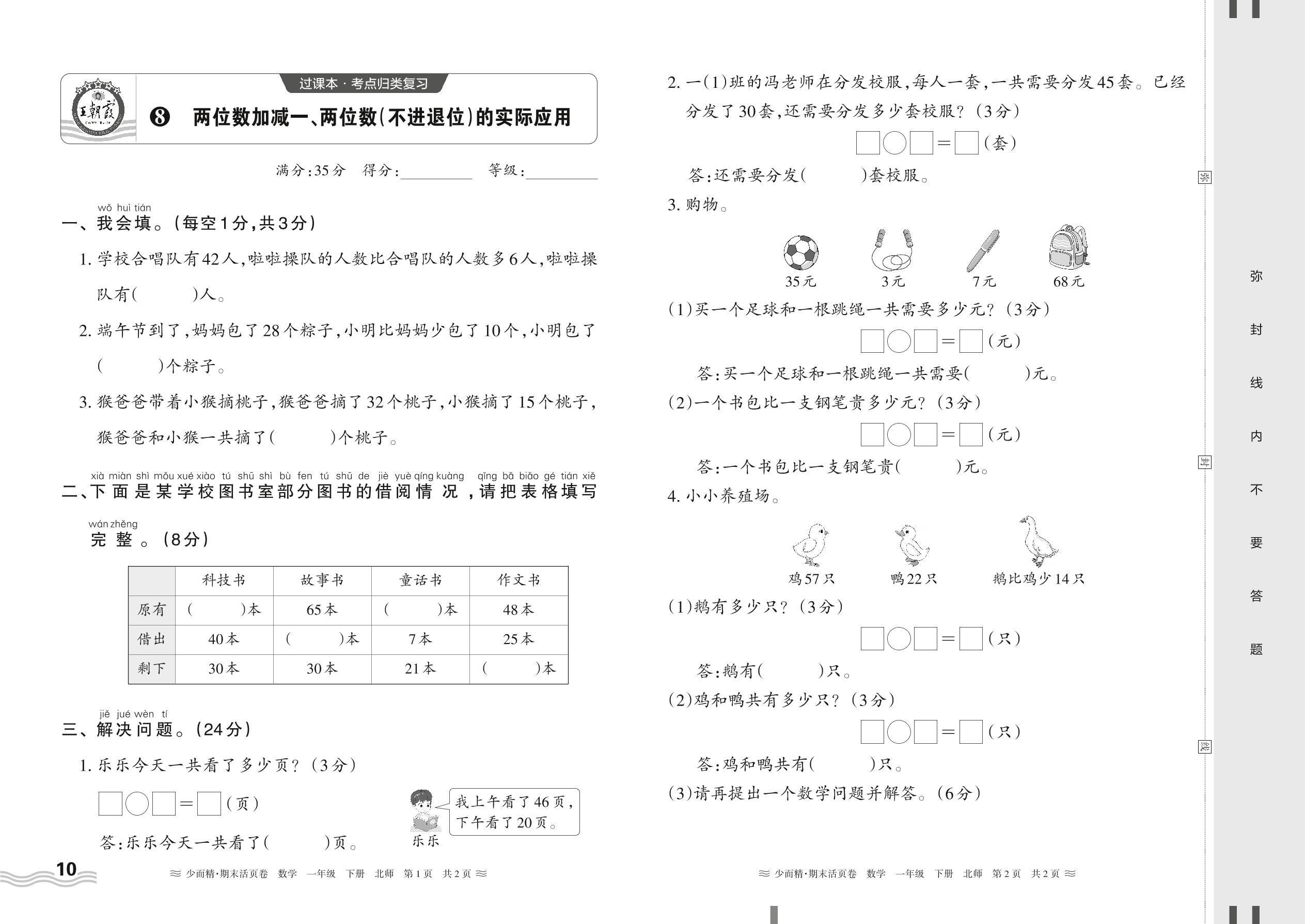 2024春下册一年级数学北师版 期末过课本HY版·两位数加减一、两位数(不进退位)的实际应用【8】