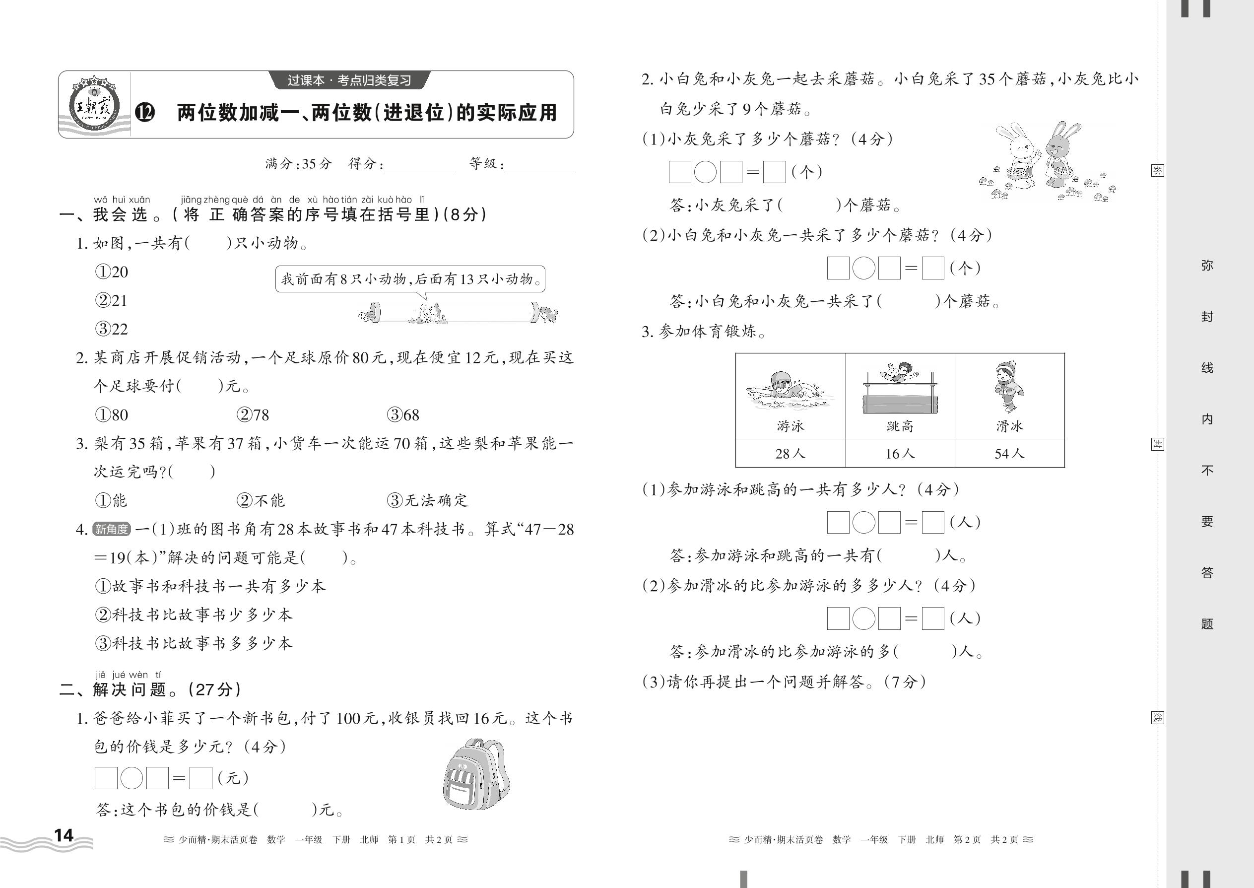 2024春下册一年级数学北师版 期末过课本HY版·两位数加减一、两位数(进退位)的实际应用【12】