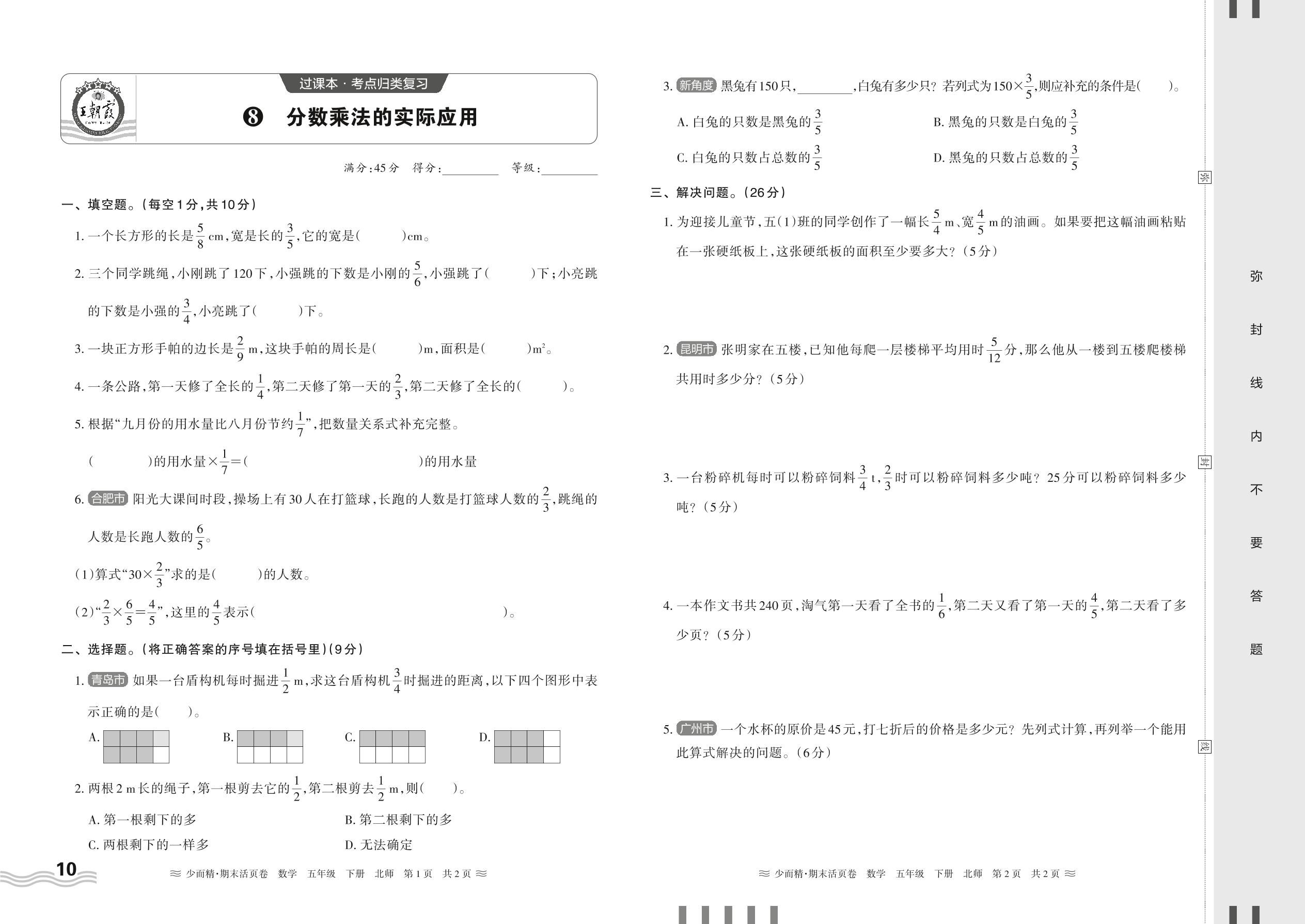 2024春下册五年级数学北师版 期末过课本HY版·分数乘法的实际应用【8】