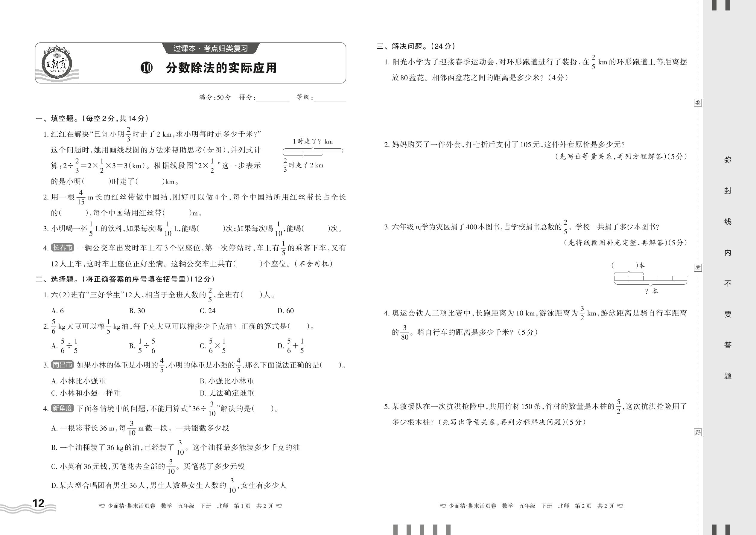 2024春下册五年级数学北师版 期末过课本HY版·分数除法的实际应用【10】