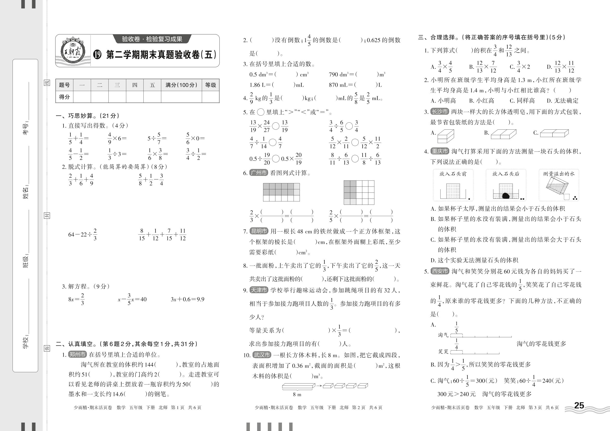 2024春下册五年级数学北师版 第二学期期末真题验收卷(五)