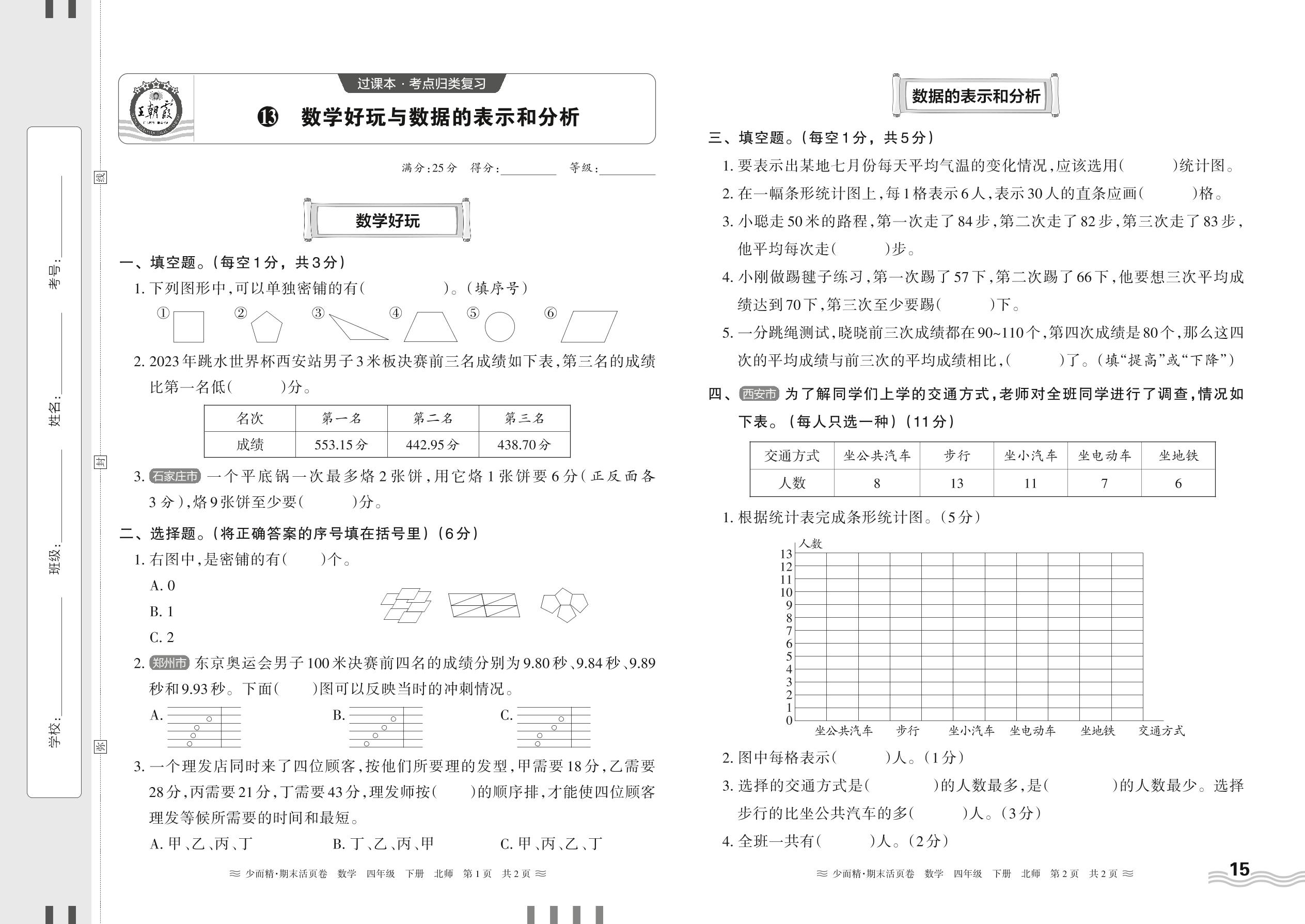 2024春下册四年级数学北师版 期末过课本HY版·数学好玩与数据的表示和分析【13】