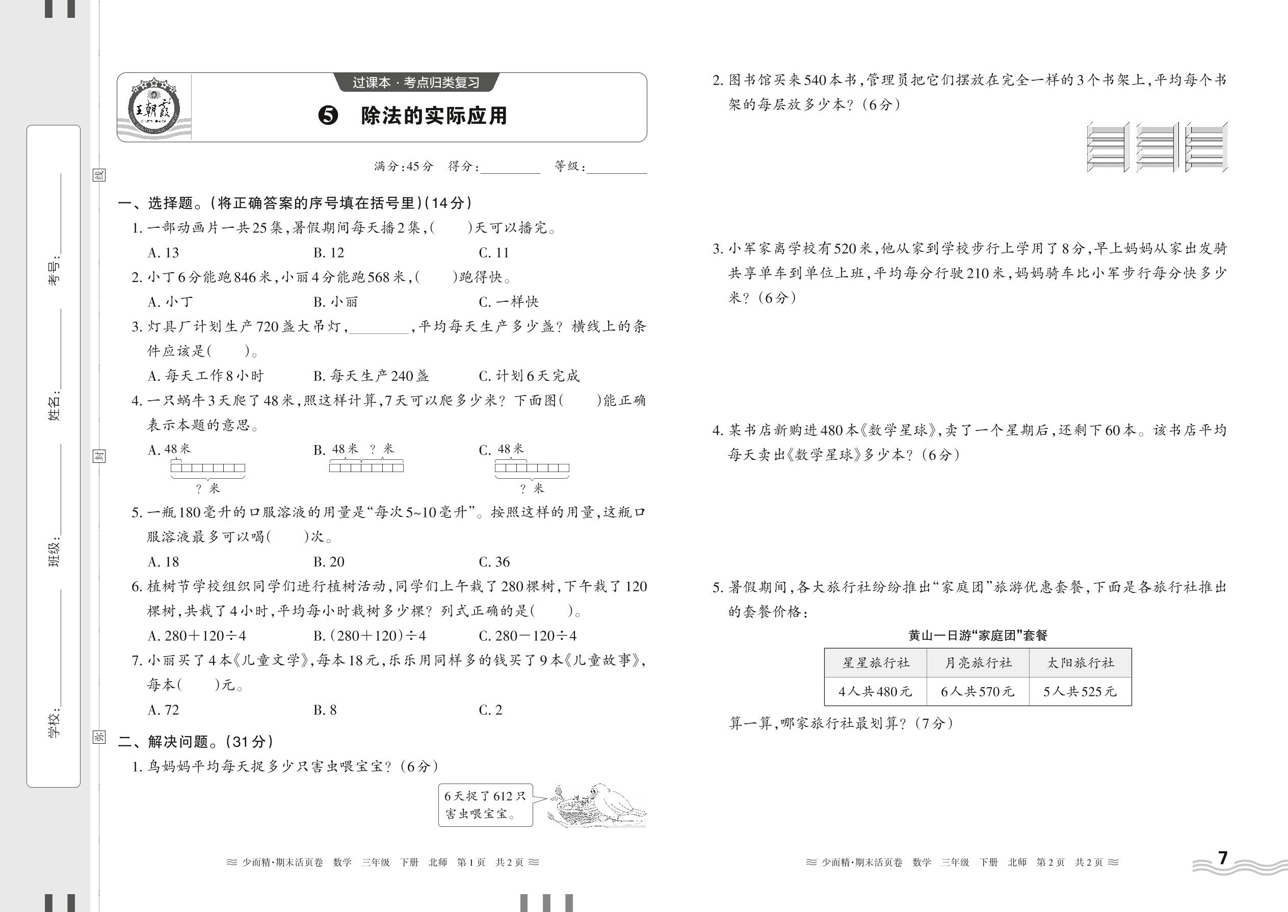 2024春下册三年级数学北师版 期末过课本HY版·除法的实际应用【5】