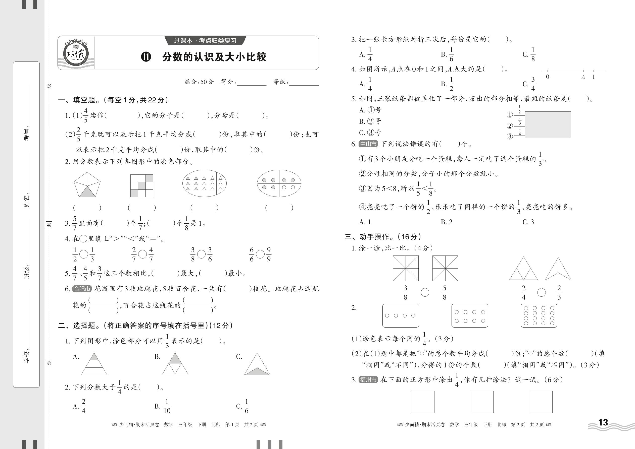 2024春下册三年级数学北师版 期末过课本HY版·分数的认识及大小比较【11】