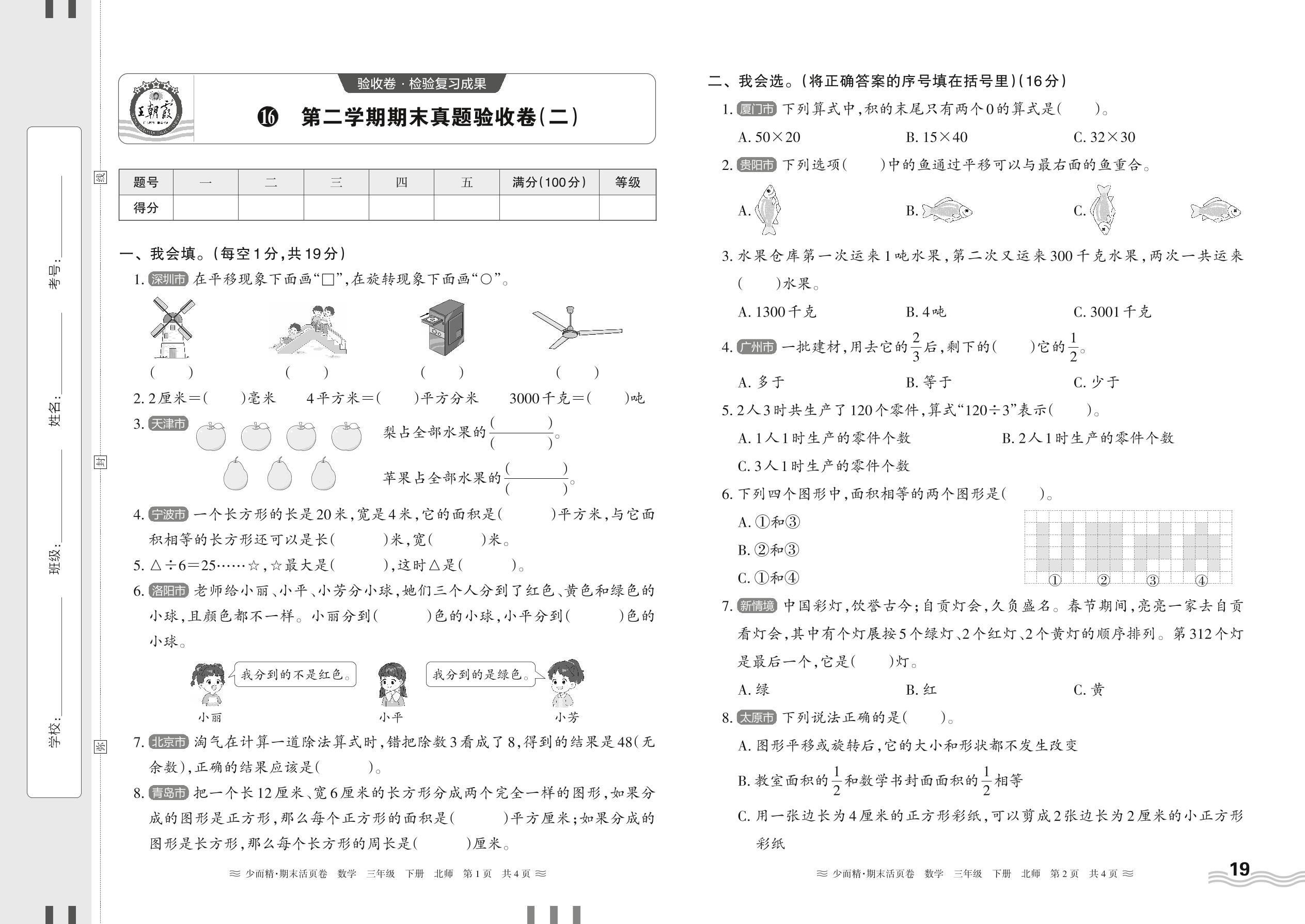 2024春下册三年级数学北师版 第二学期期末真题验收卷(二)