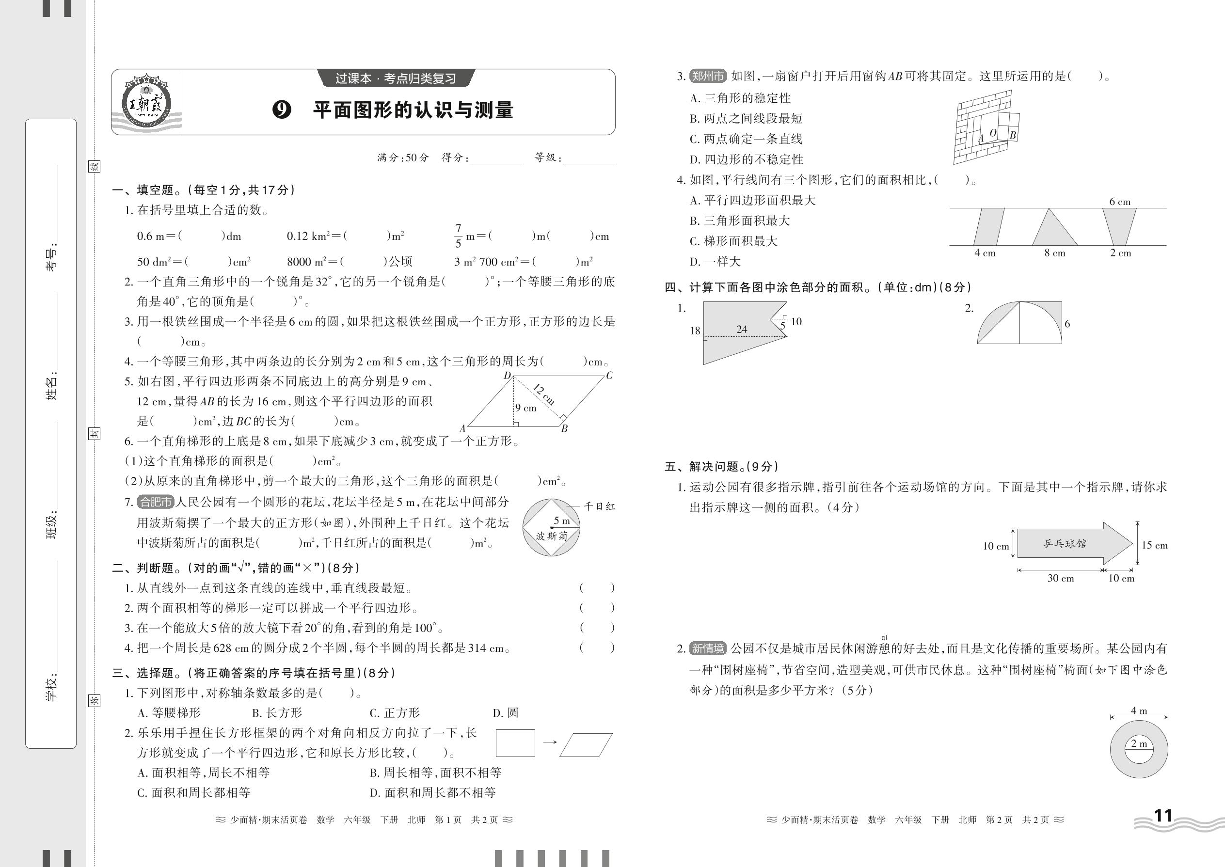 2024春下册六年级数学北师版 期末过课本HY版·平面图形的认识与测量【9】
