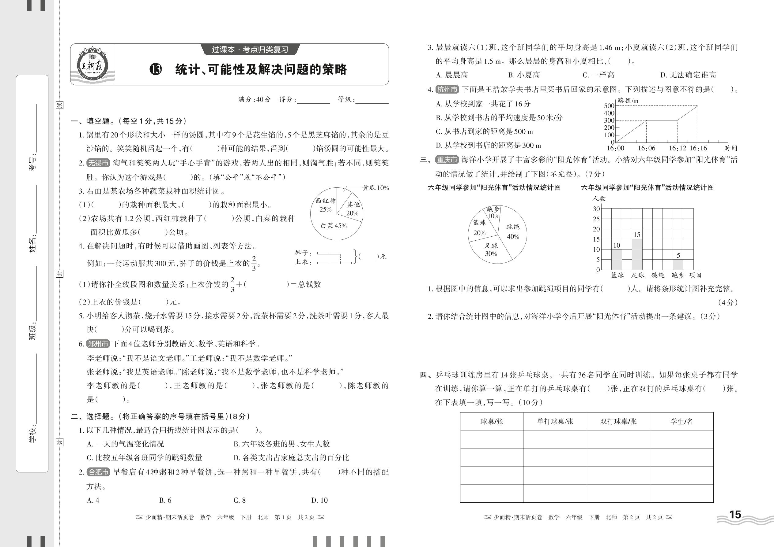 2024春下册六年级数学北师版 期末过课本HY版·统计、可能性及解决问题的策略【13】