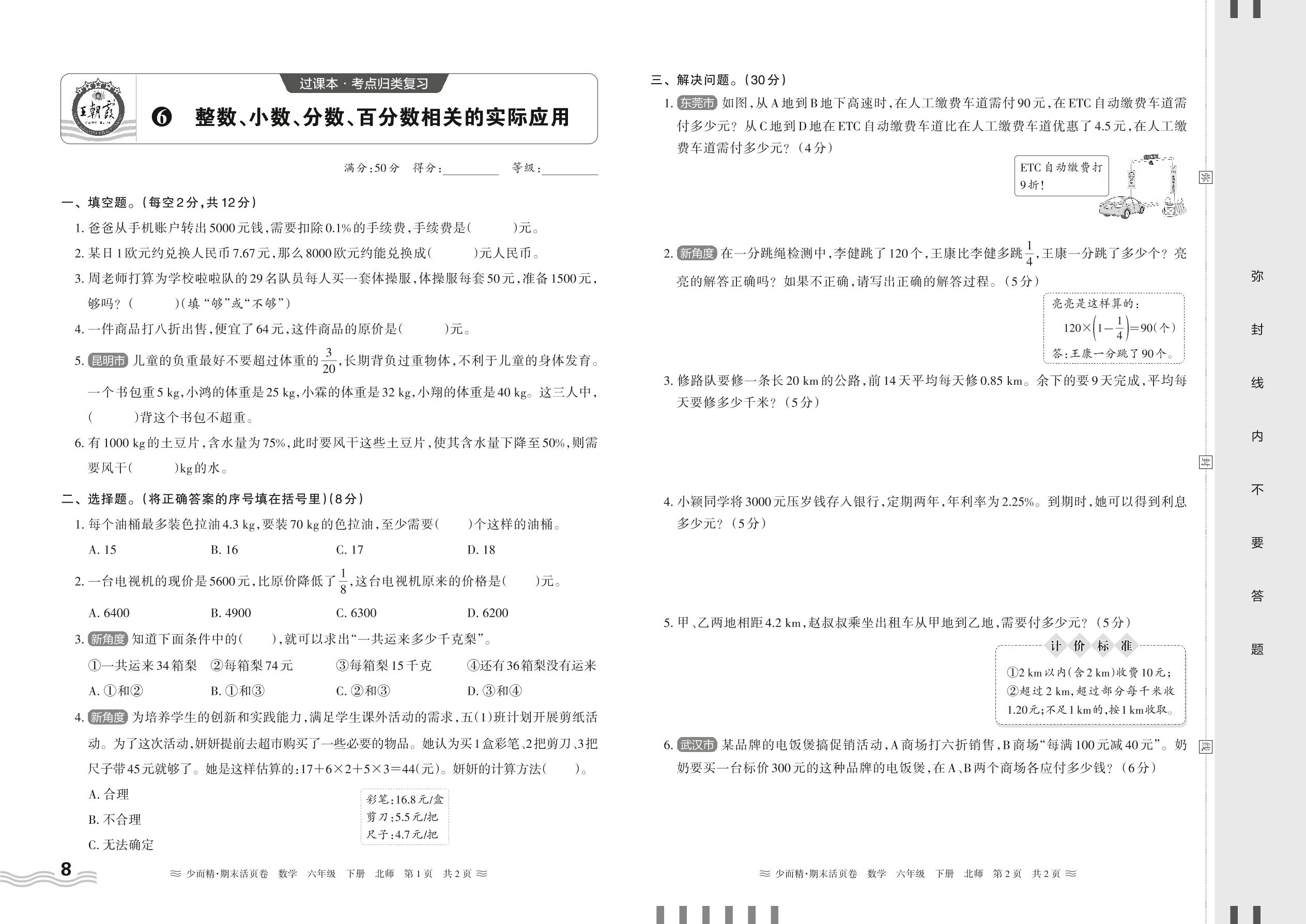 2024春下册六年级数学北师版 期末过课本HY版·整数、小数、分数、百分数相关的实际应用【6】