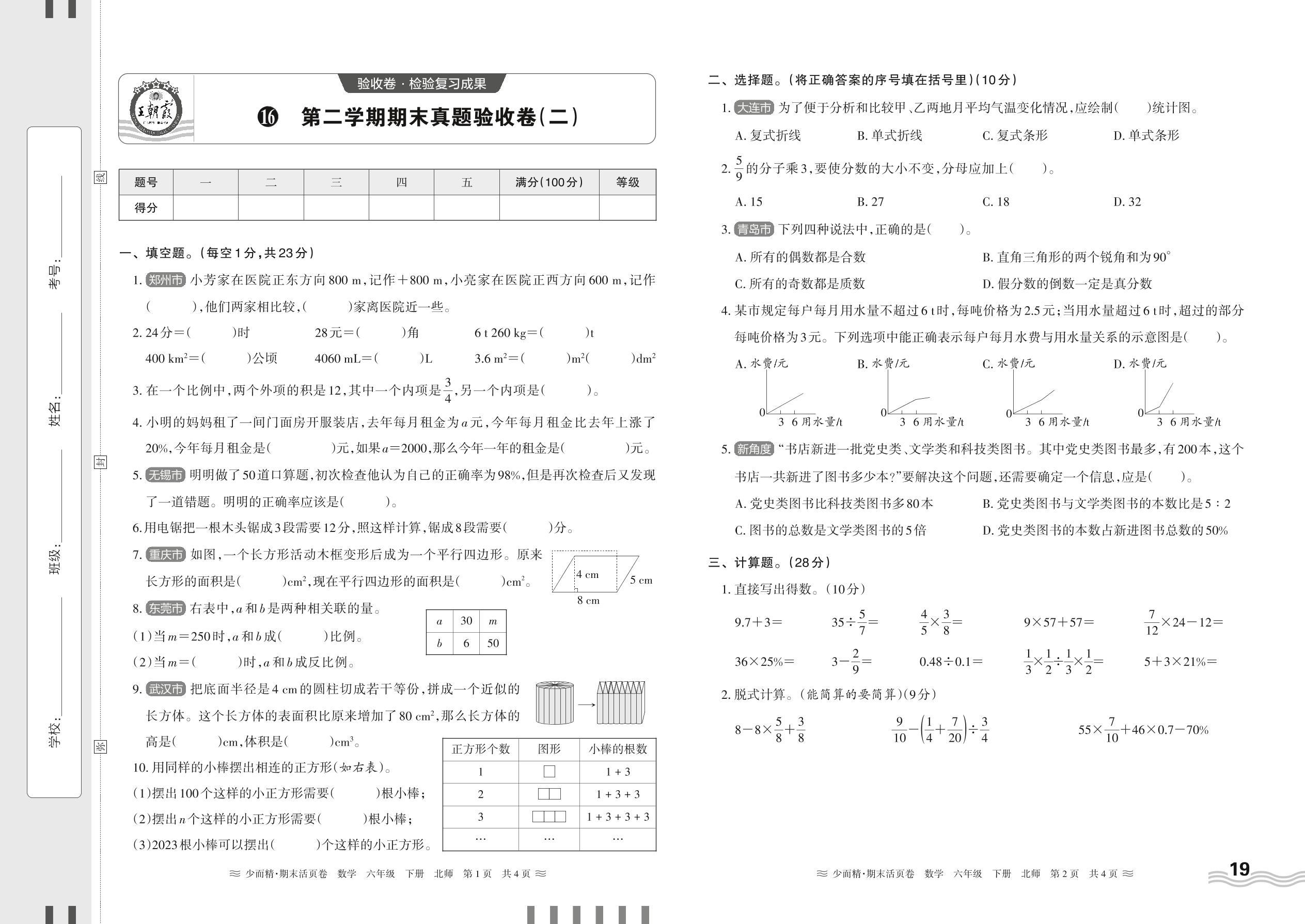 2024春下册六年级数学北师版 第二学期期末真题验收卷(二)