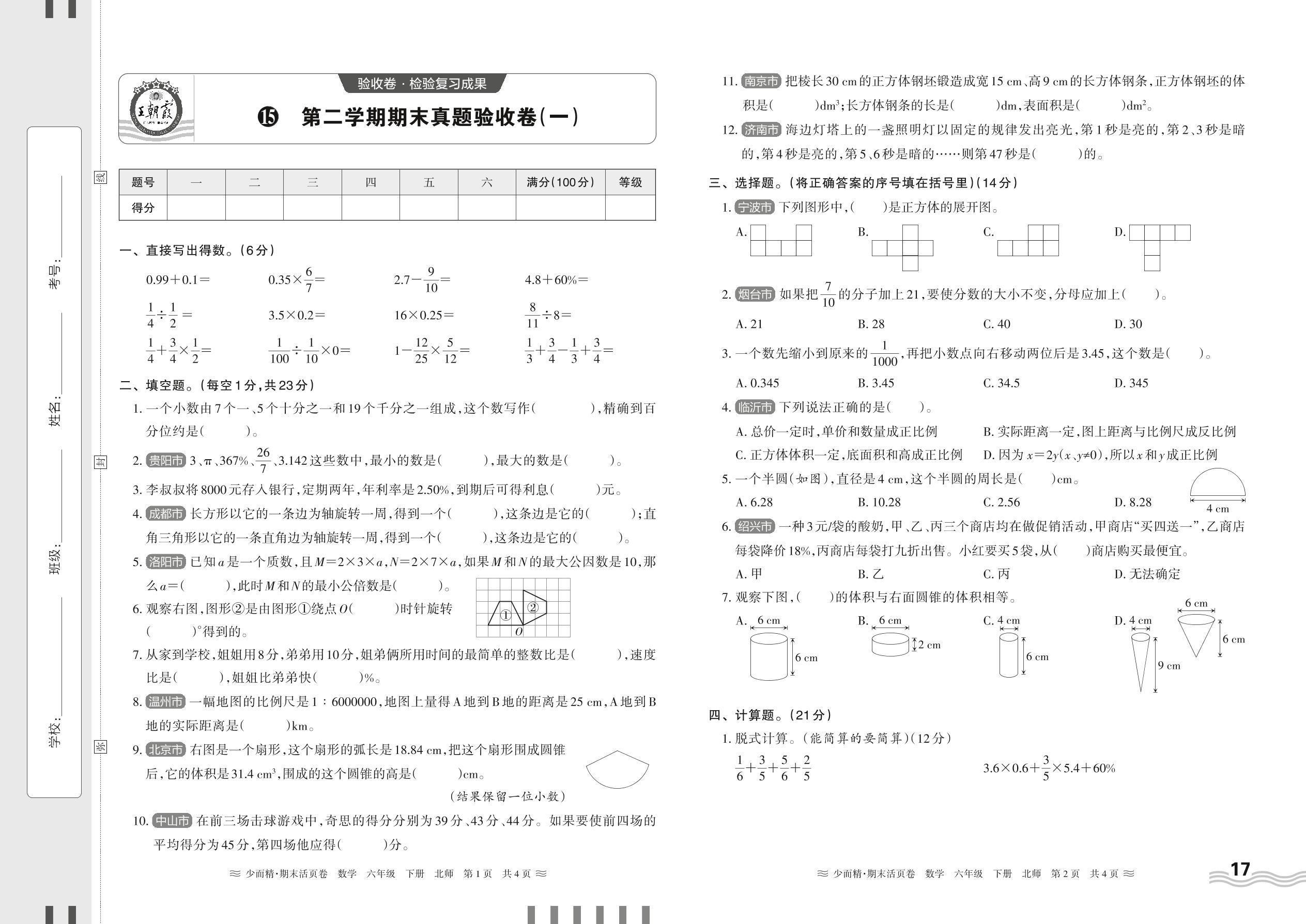 2024春下册六年级数学北师版 第二学期期末真题验收卷(一)