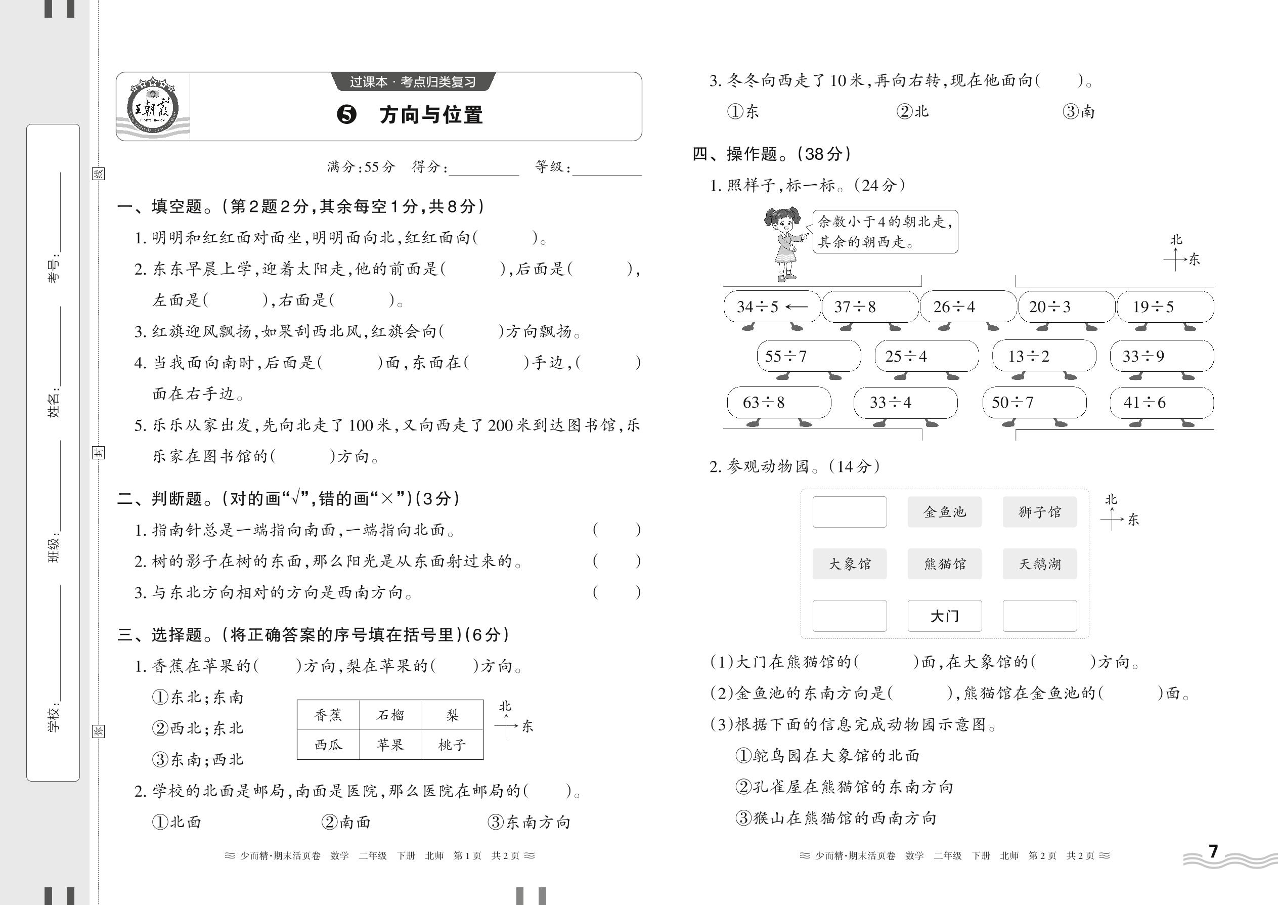 2024春下册二年级数学北师版 期末过课本HY版·方向与位置【5】