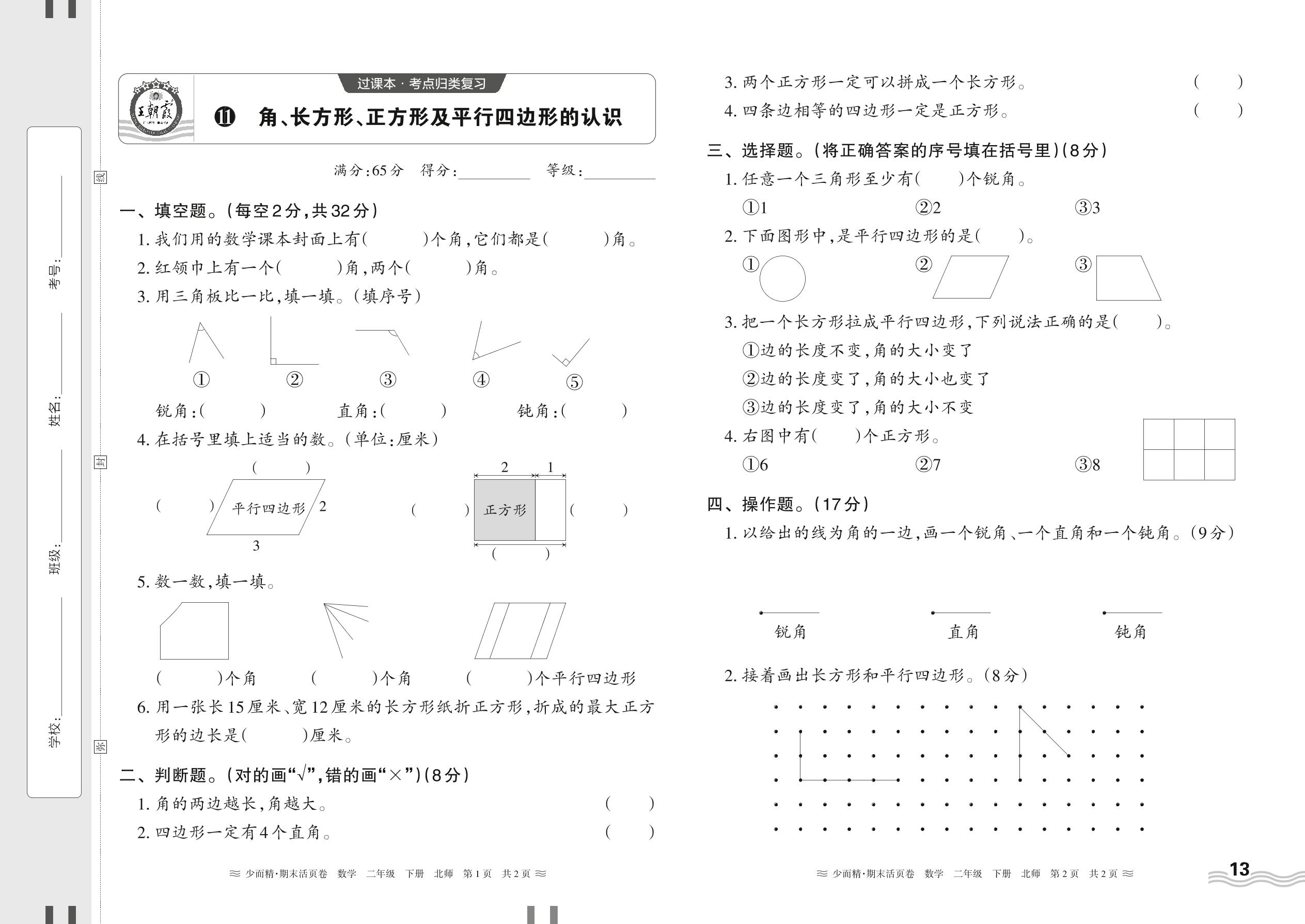 2024春下册二年级数学北师版 期末过课本HY版·角、长方形、正方形及平行四边形的【11】
