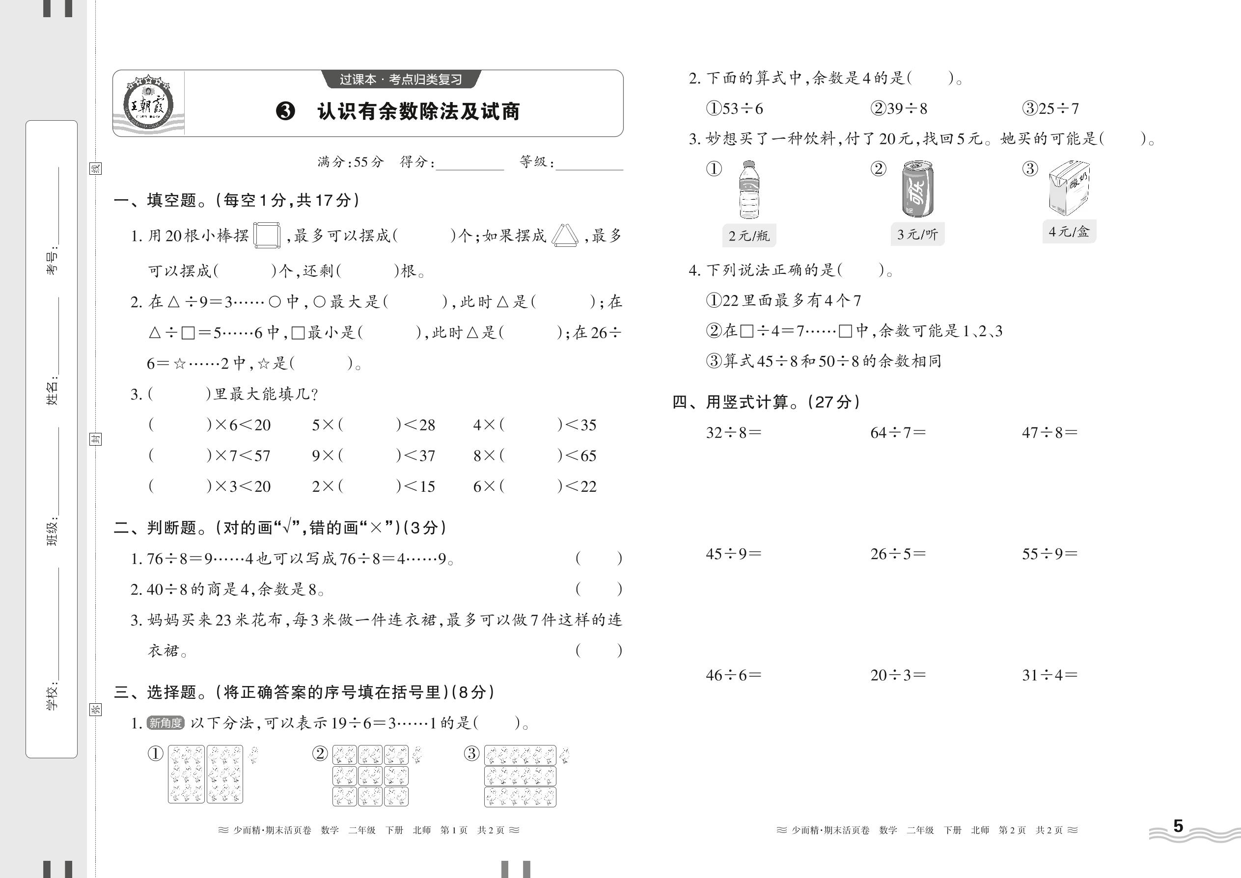 2024春下册二年级数学北师版 期末过课本HY版·认识有余数除法及试商【3】