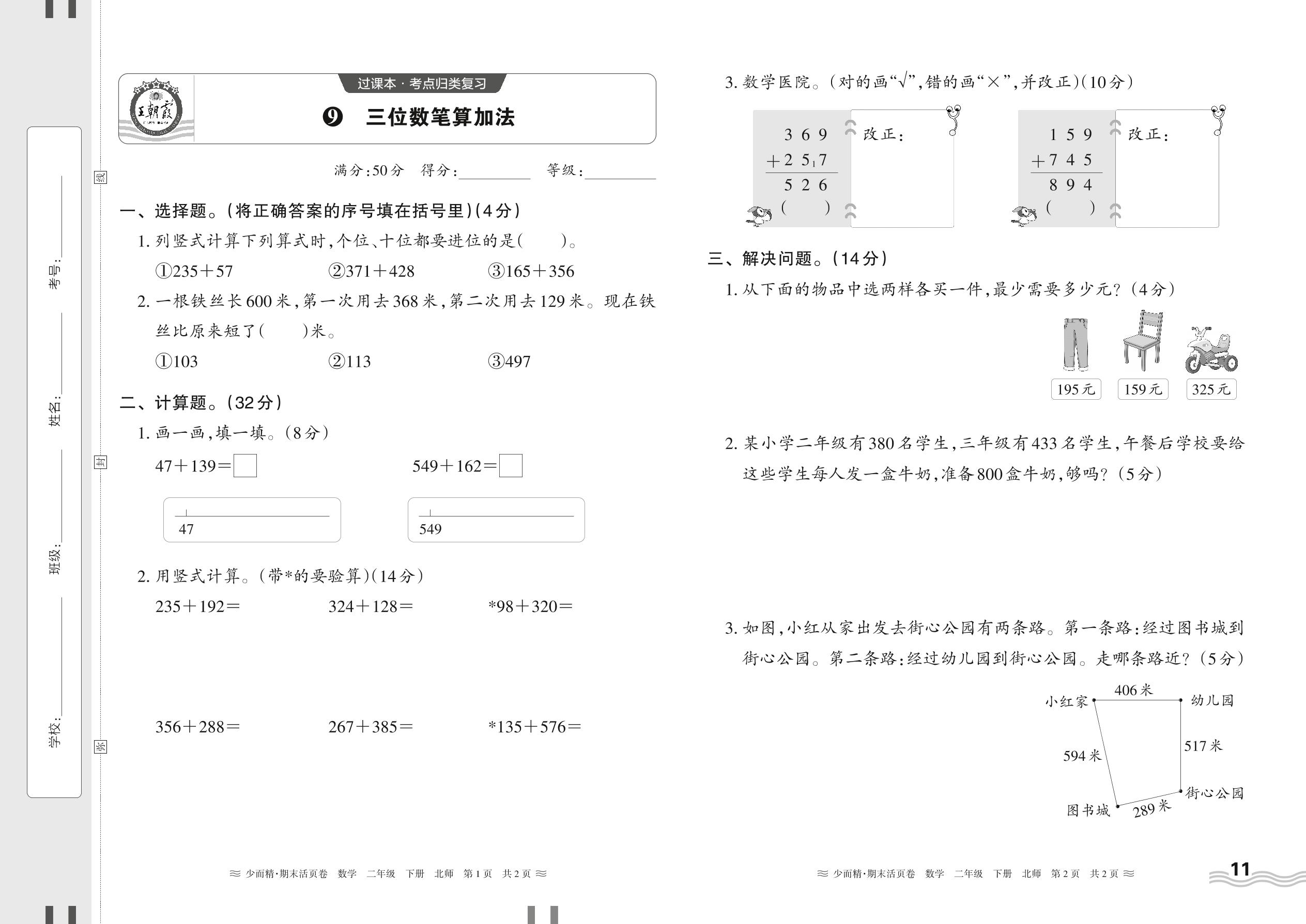 2024春下册二年级数学北师版 期末过课本HY版·三位数笔算加法【9】