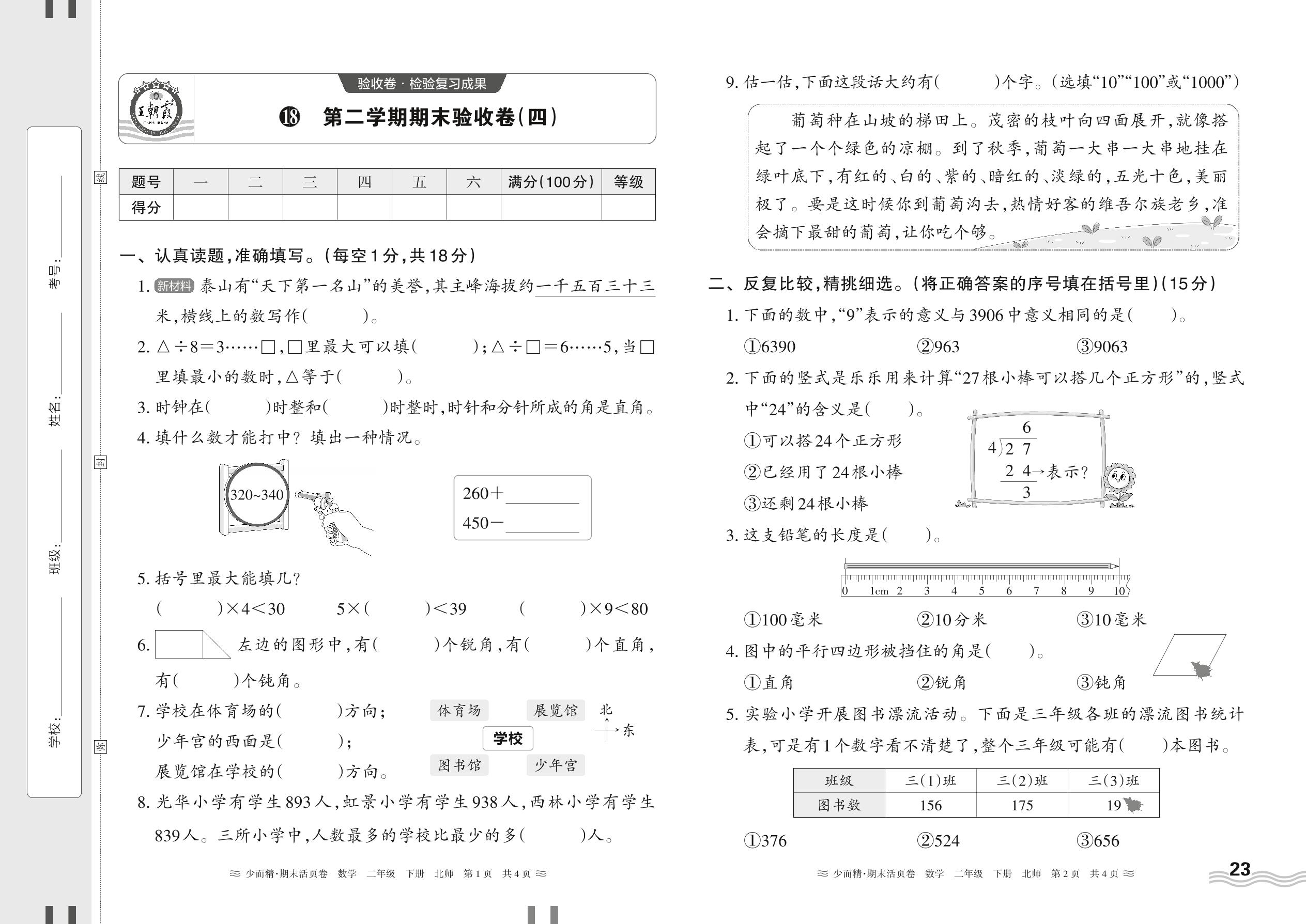 2024春下册二年级数学北师版 第二学期期末验收卷(四)