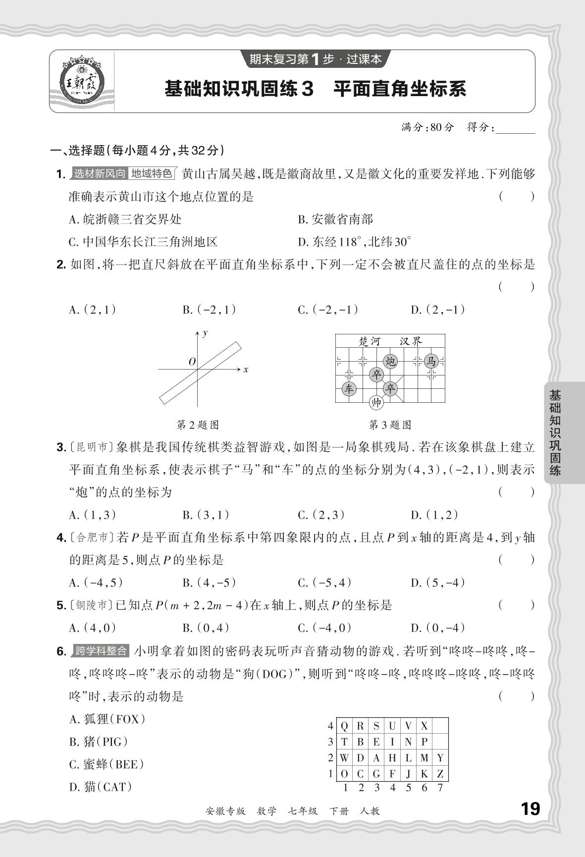 2024春下册七年级数学人教版 期末过课本安徽版·基础知识巩固练 平面直角坐标系【3】