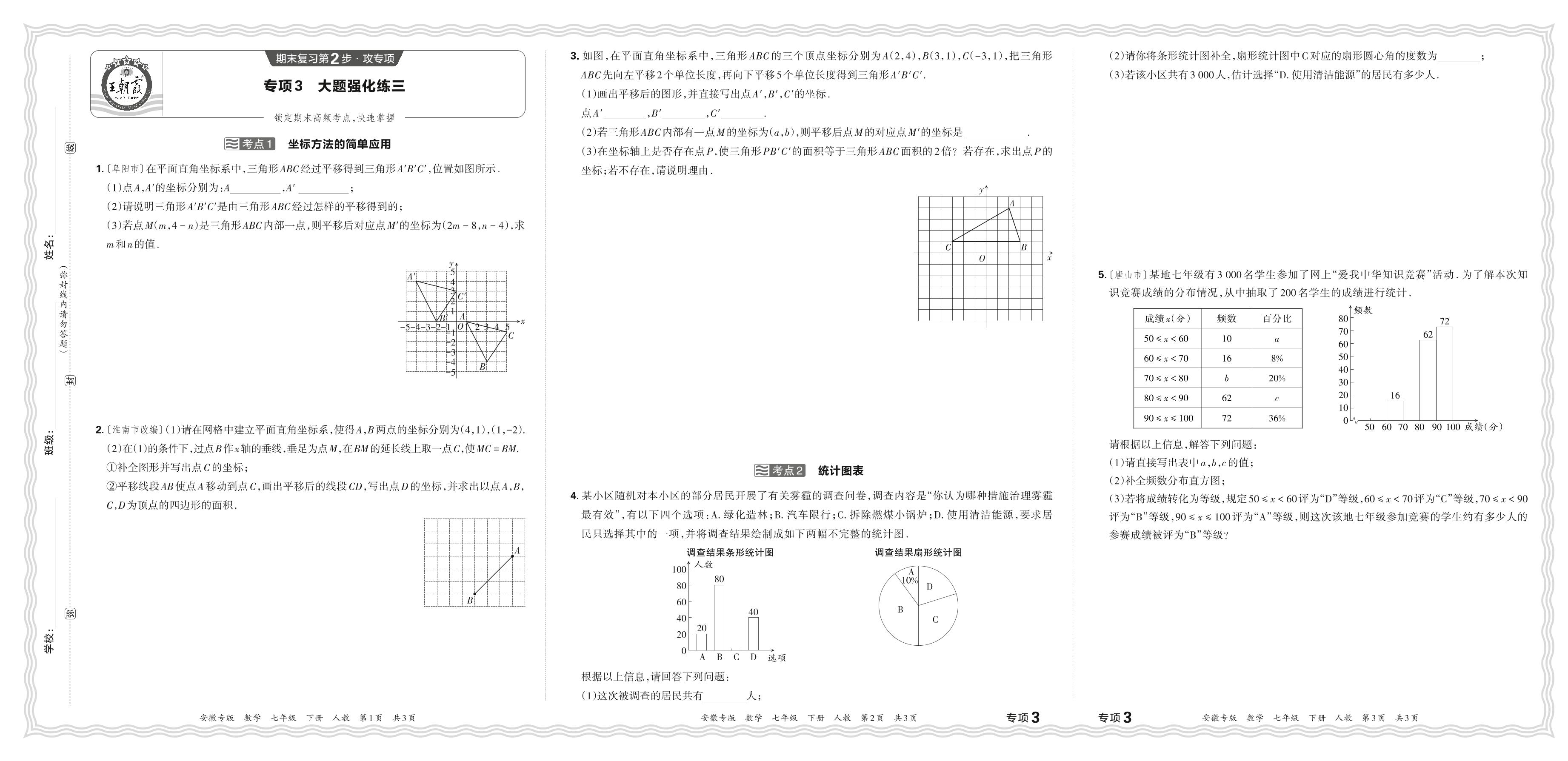 2024春下册七年级数学人教版 期末专项卷安徽版·大题强化练三