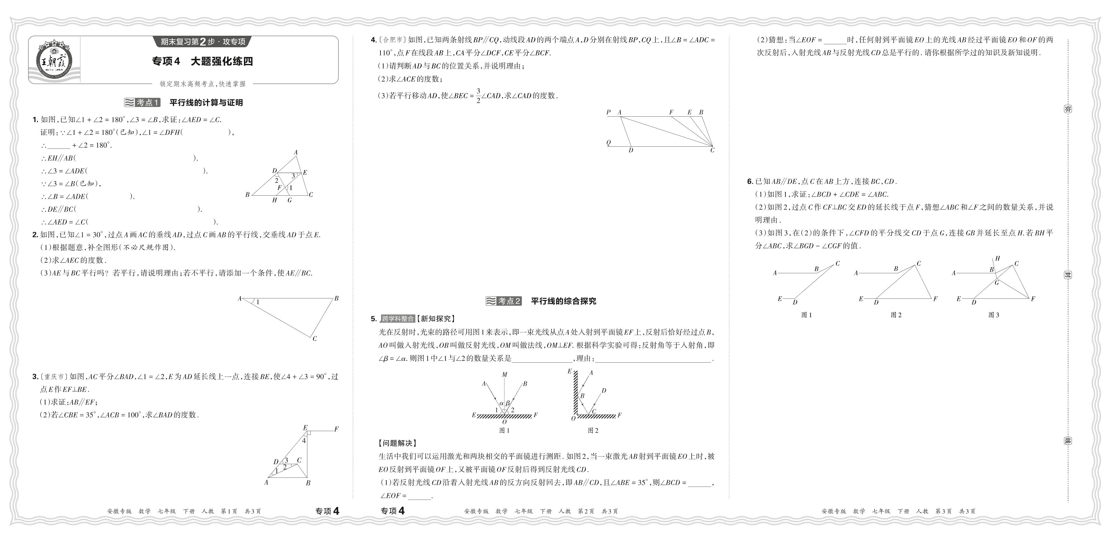 2024春下册七年级数学人教版 期末专项卷安徽版·大题强化练四