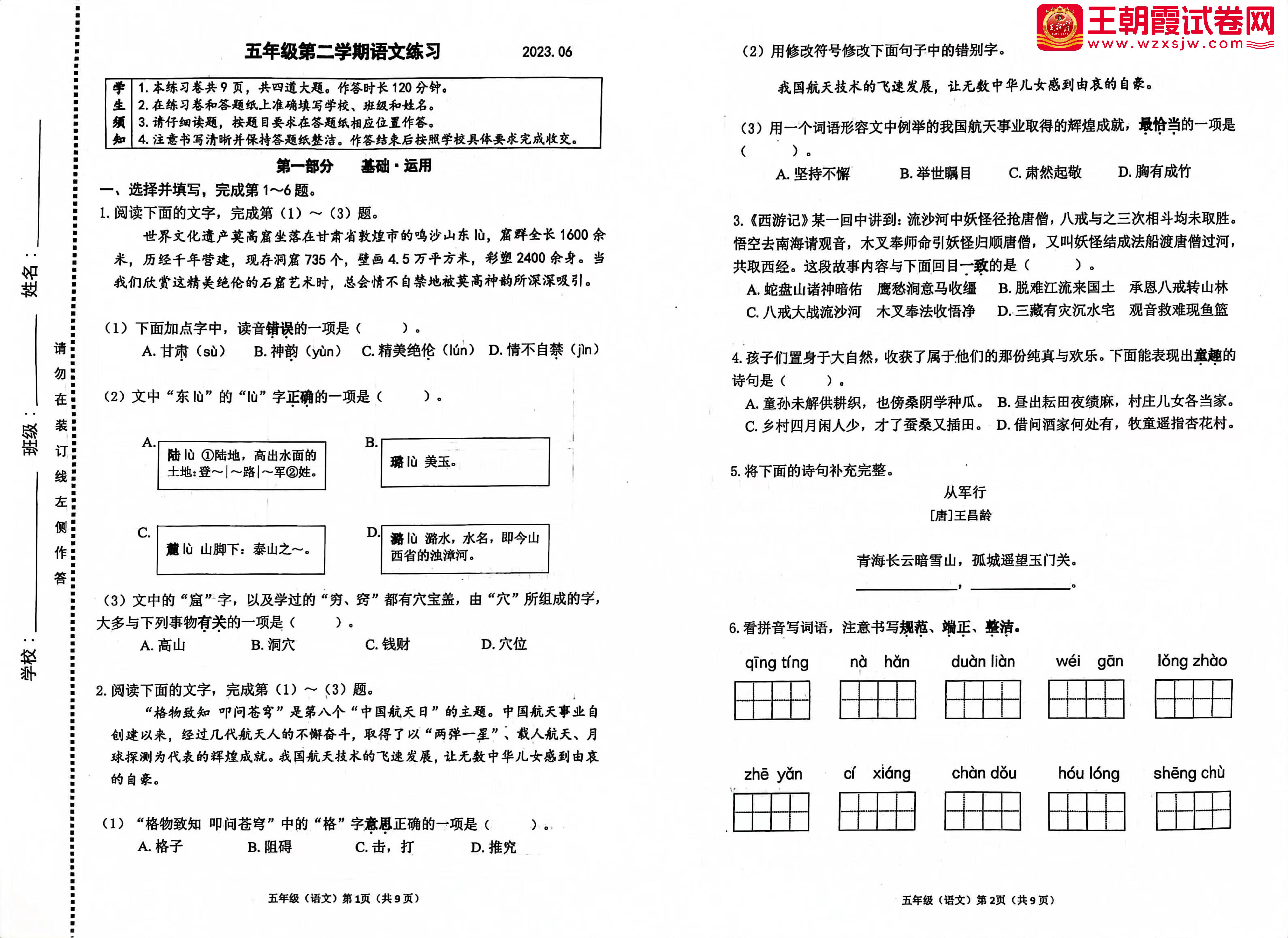 五年级语文人教版下册期末卷