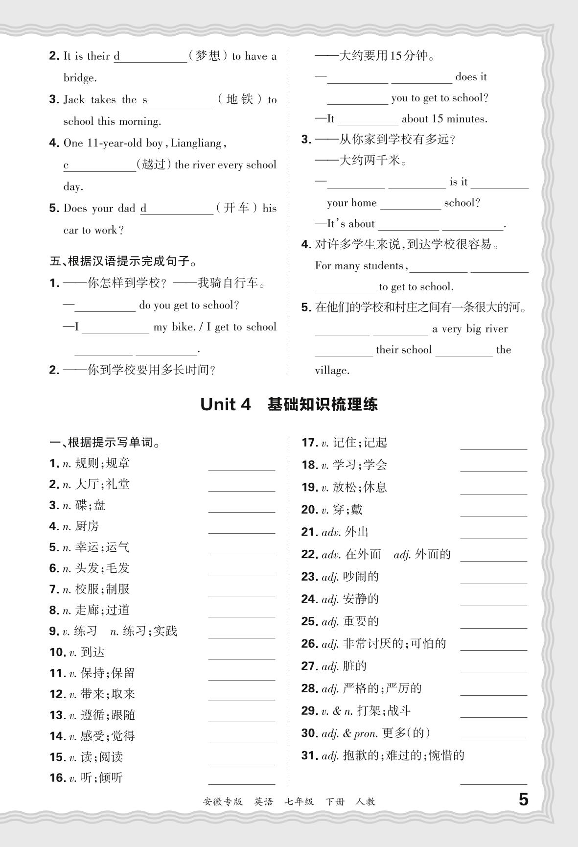 2024春下册七年级英语人教版 期末过课本安徽版·Unit 4 基础知识梳理练