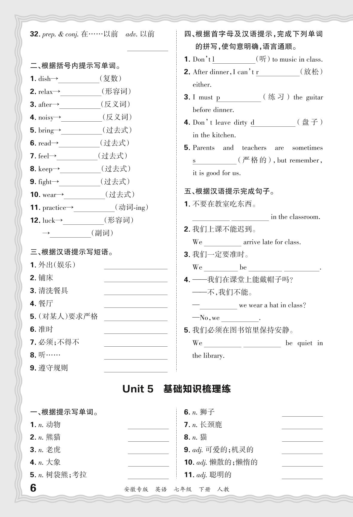 2024春下册七年级英语人教版 期末过课本安徽版·Unit 5 基础知识梳理练