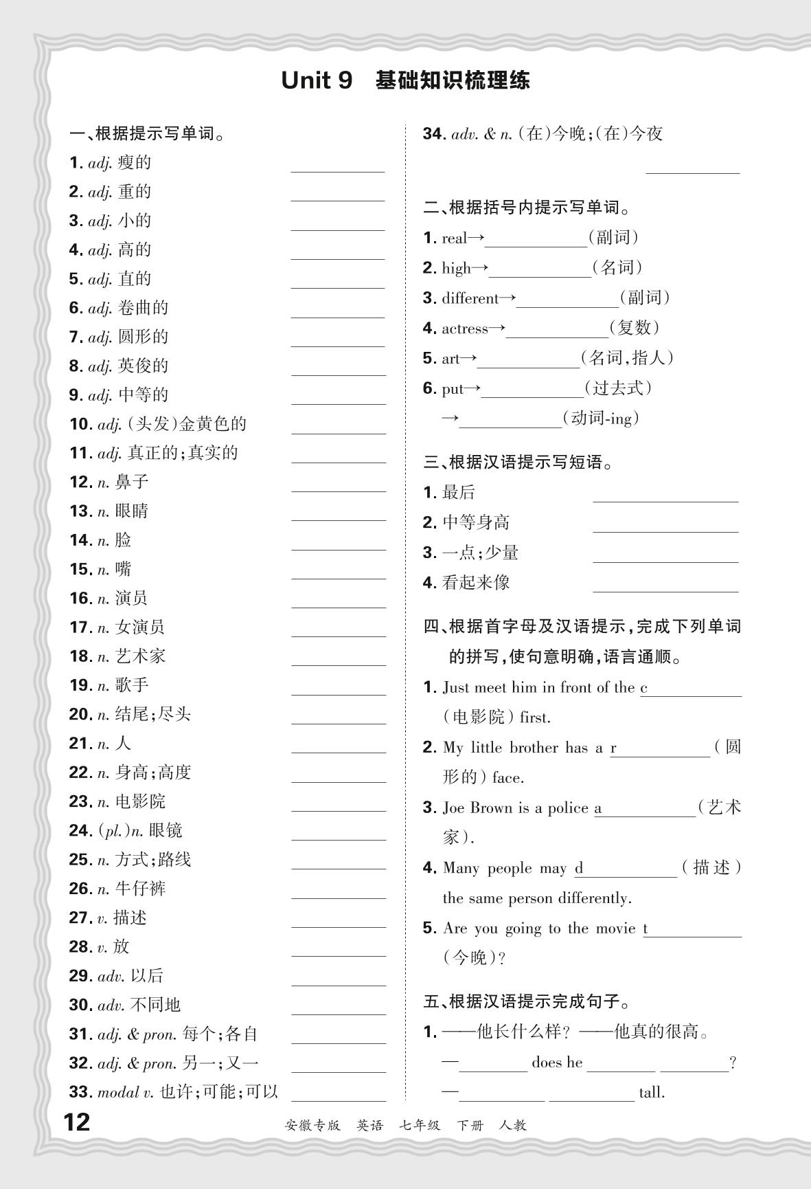 2024春下册七年级英语人教版 期末过课本安徽版·Unit 9 基础知识梳理练