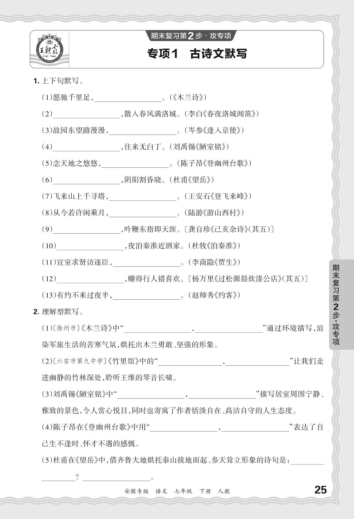 2024春下册七年级语文人教版 期末专项卷安徽版·古诗文默写【1】
