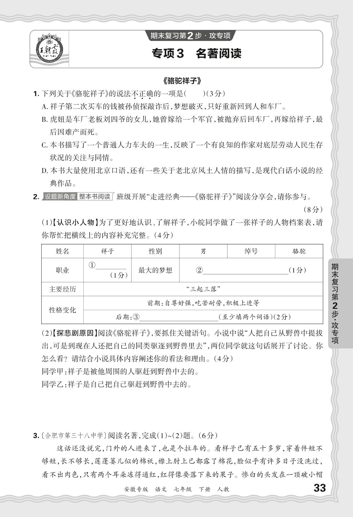 2024春下册七年级语文人教版 期末专项卷安徽版·名著阅读【3】