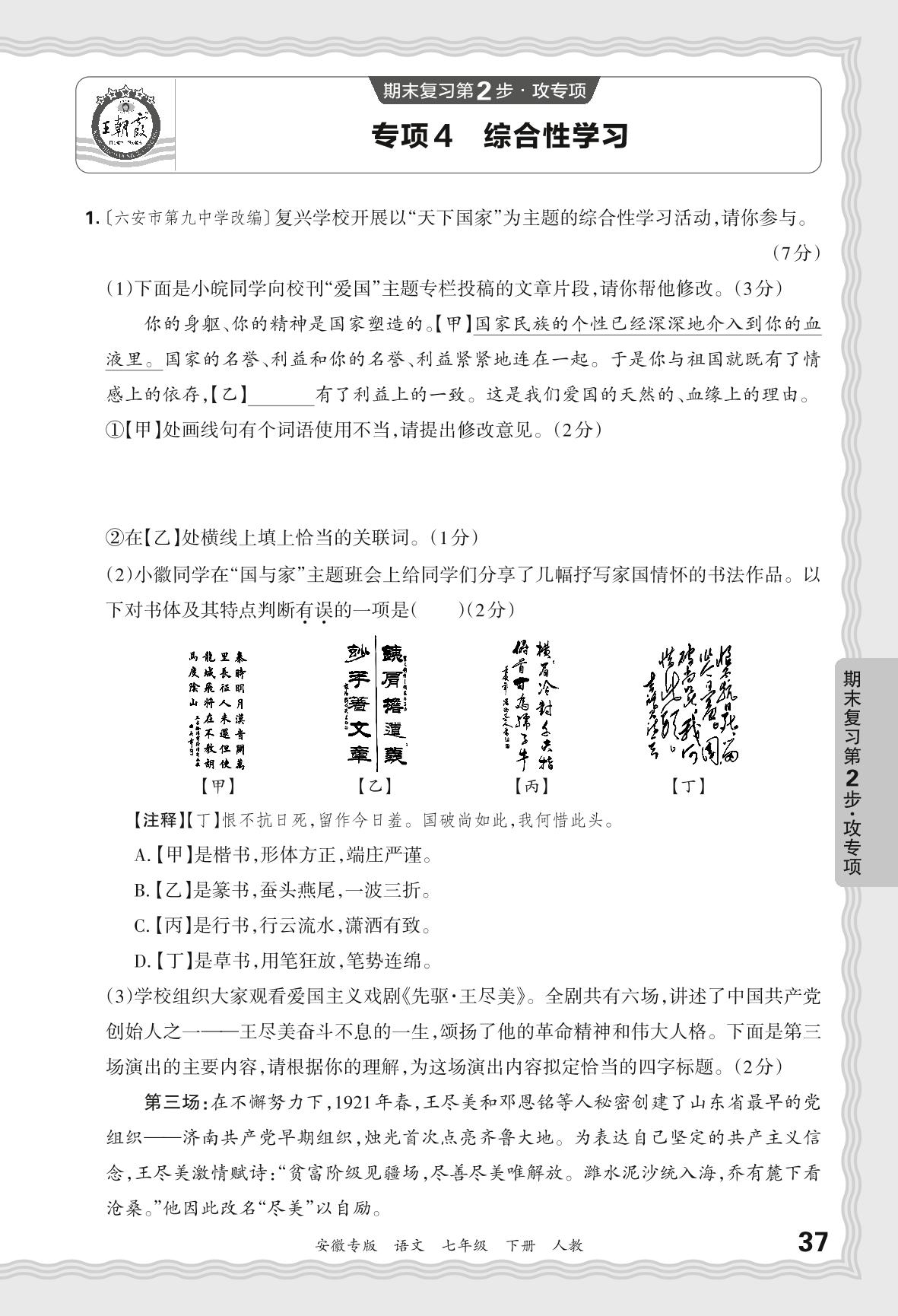 2024春下册七年级语文人教版 期末专项卷安徽版·综合性学习【4】