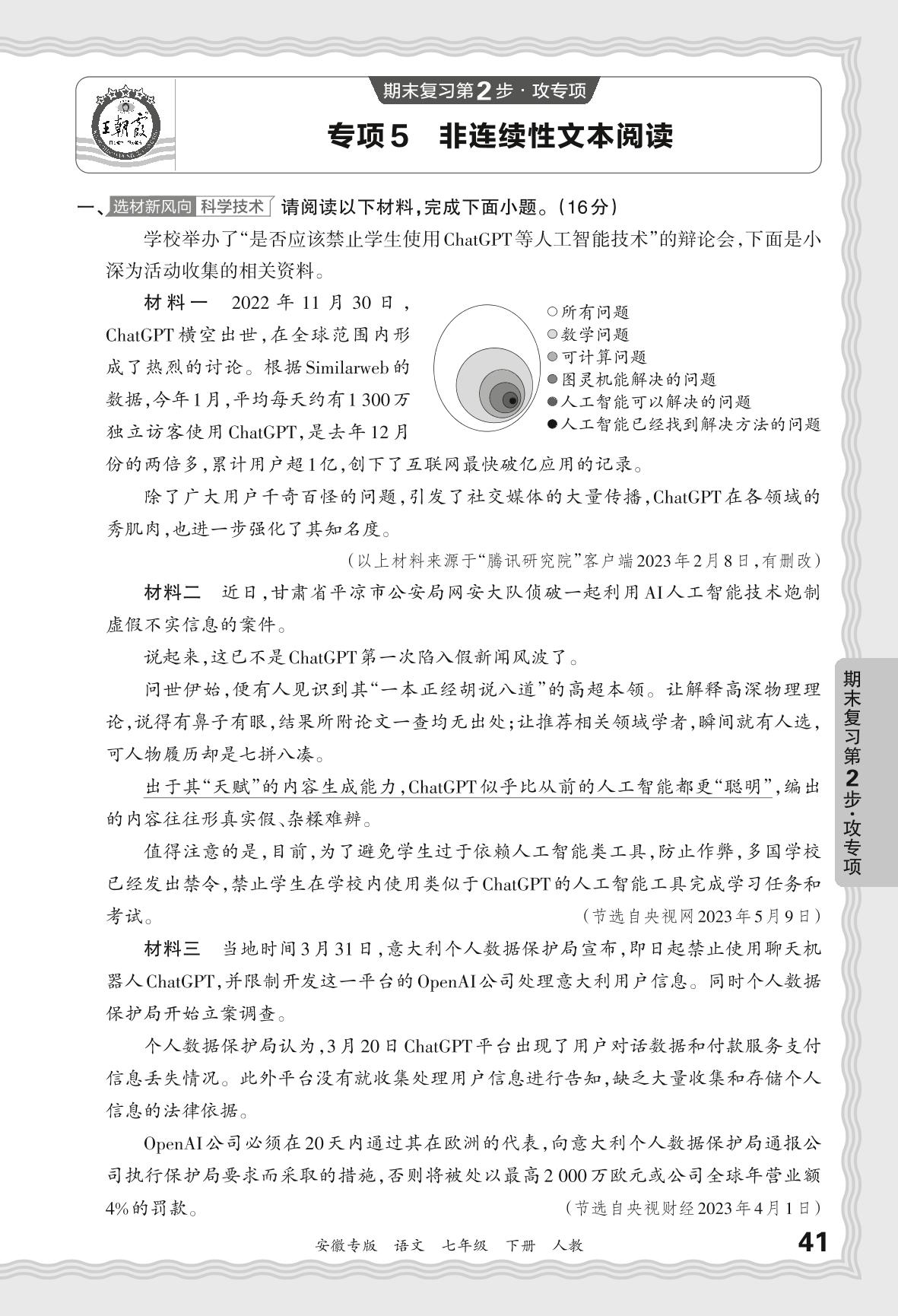 2024春下册七年级语文人教版 期末专项卷安徽版·非连续性文本阅读【5】