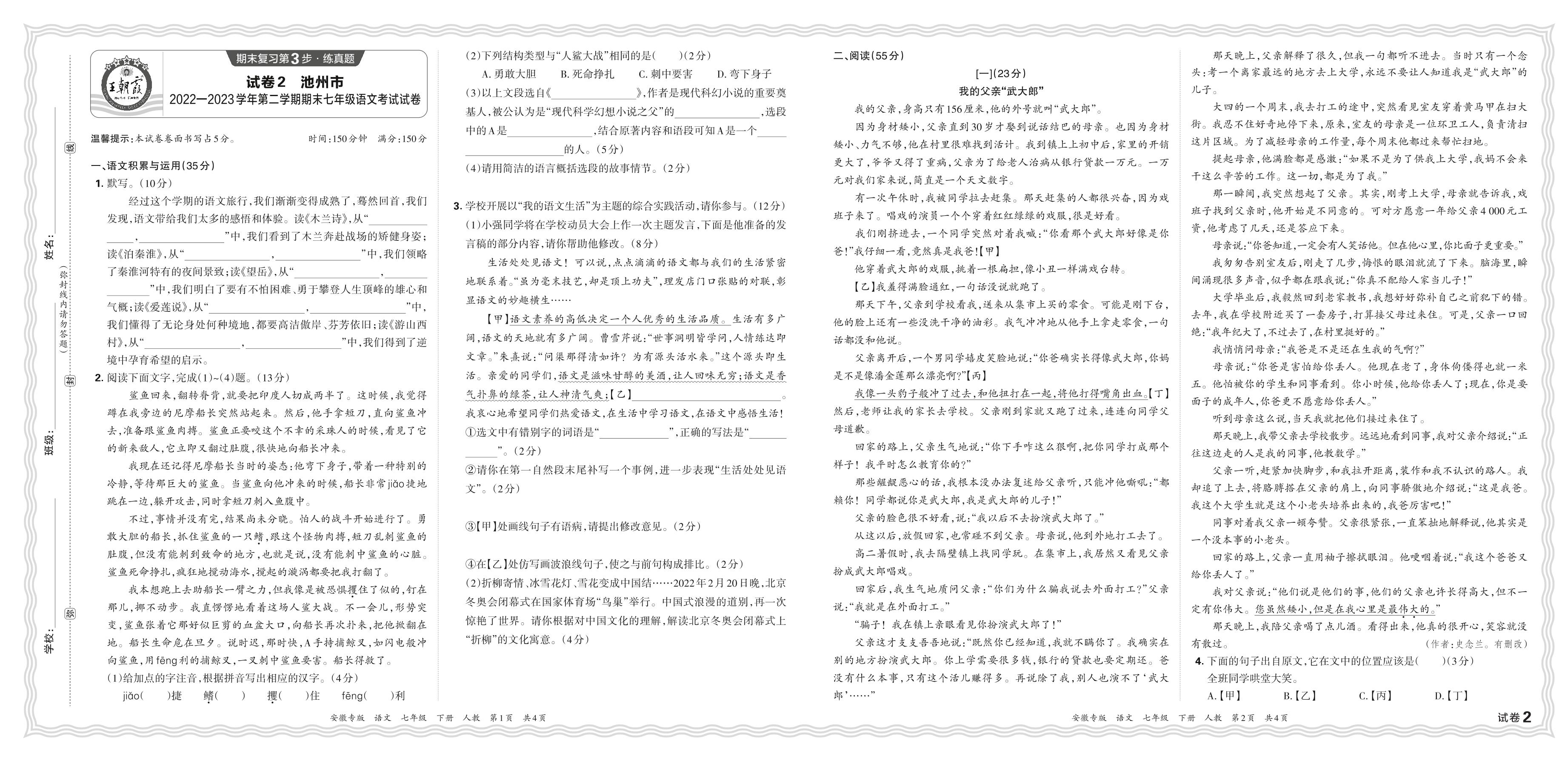 安徽省池州市2022-2023学年第二学期期末七年级语文考试试卷(人教版)【2】