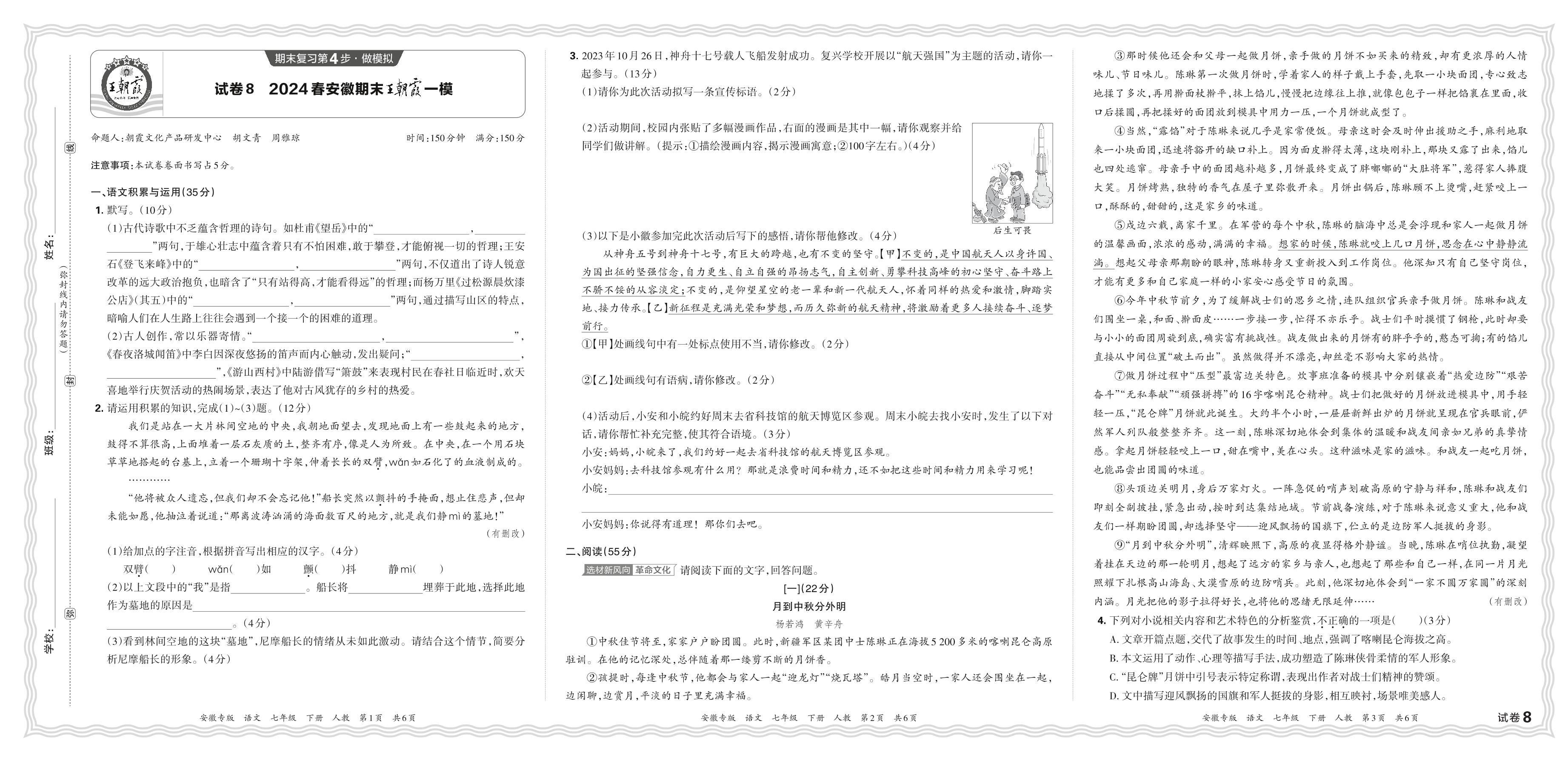 2024春下册七年级语文人教版 安徽期末王朝霞一模