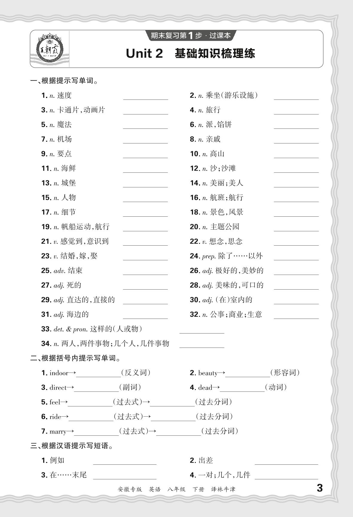 2024春下册八年级英语译林牛津版 期末过课本安徽版·Unit 2 基础知识梳理练